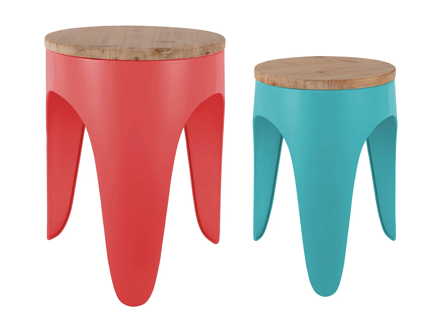 Ensemble de tabourets Double Funky - Rouge écarlate et bleu turquoise