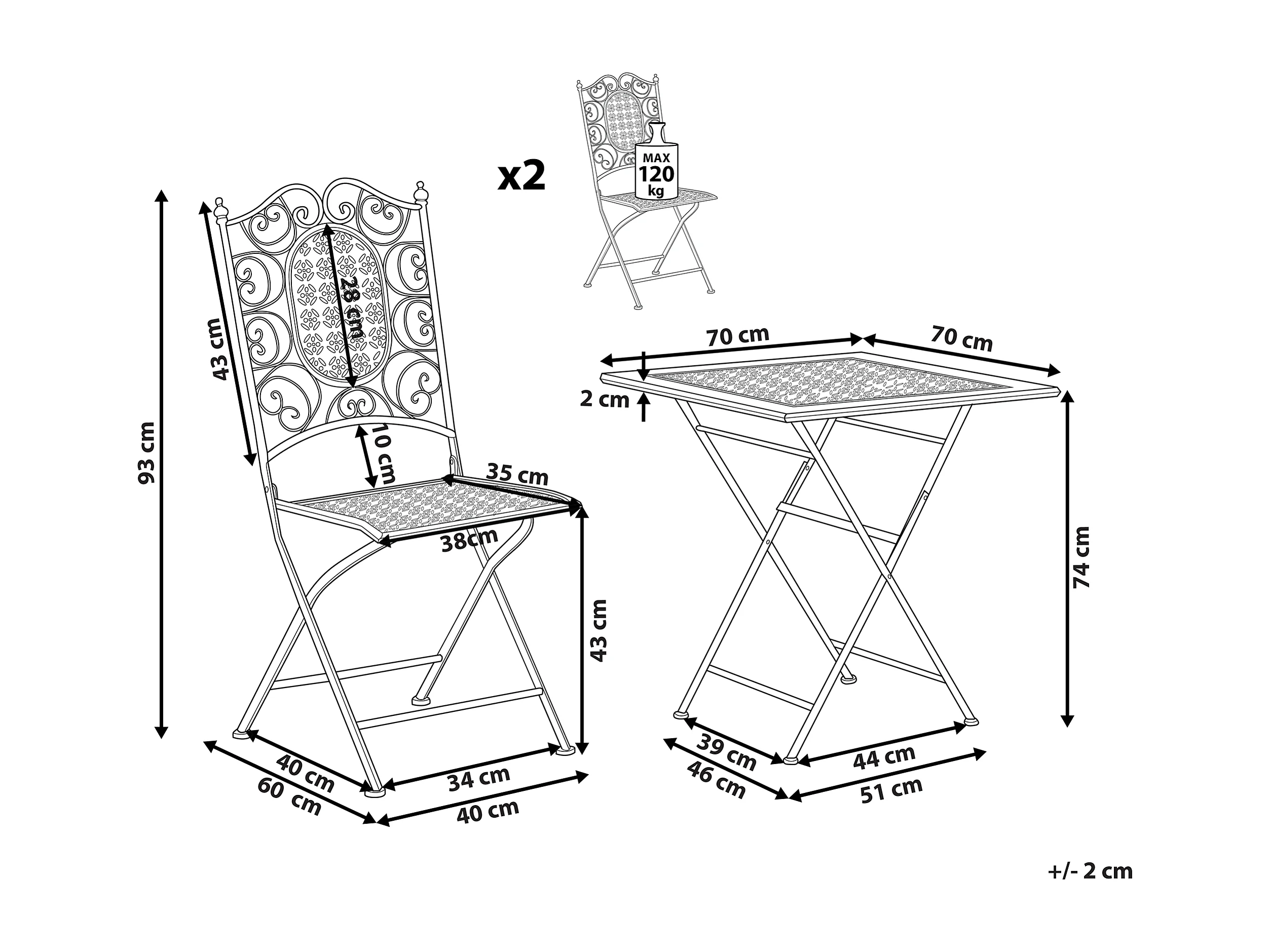 Ensemble bistrot Pliant BORMIO Métal Noir