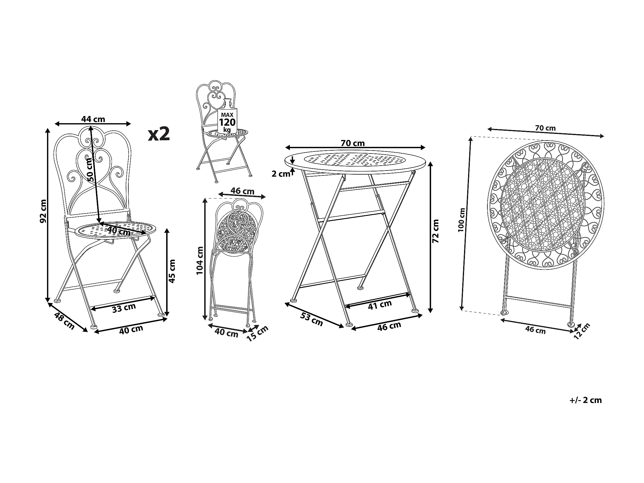 Ensemble bistrot Pliant TRIESTE Métal Beige clair