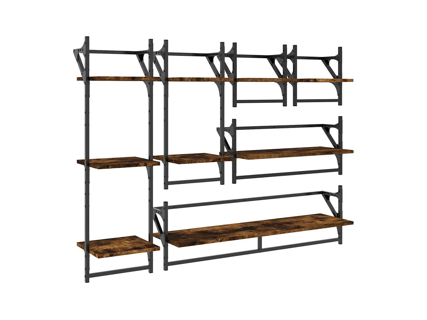 Ensemble d'étagères murales avec barres 6 pcs chêne fumé OFR39986 BonneVie Meuble
