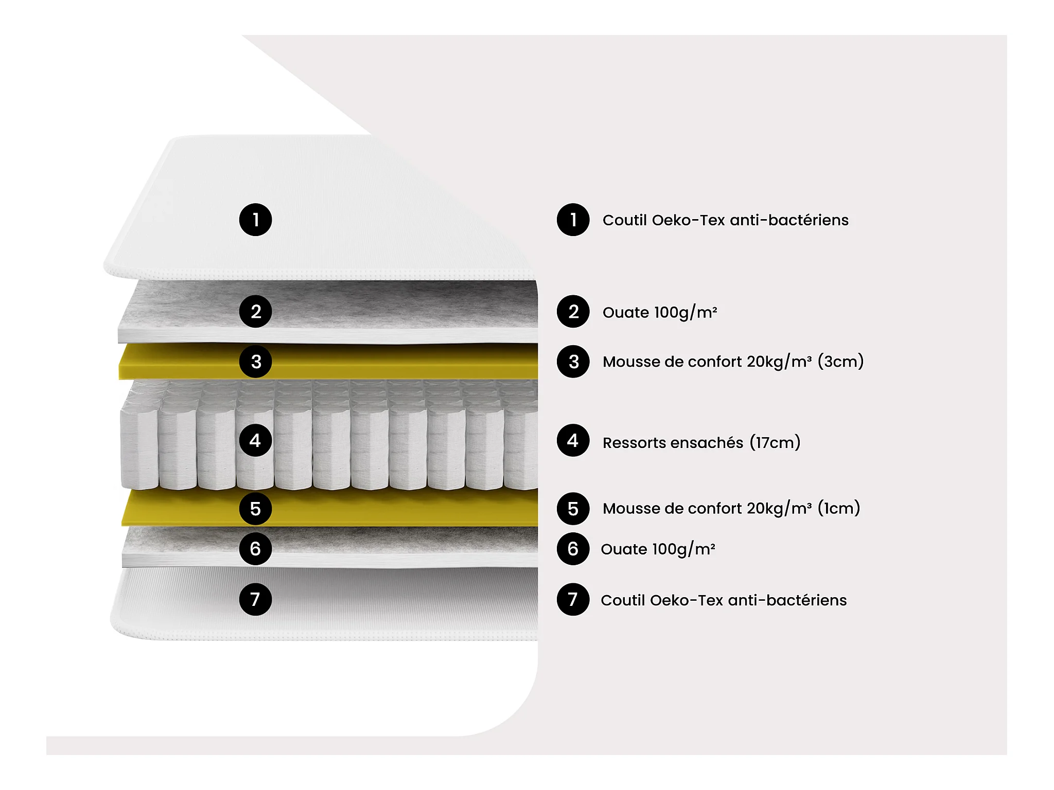 Ensemble 90 x 190 cm sommier coffre naturel clair + matelas ressorts ensachés ép.22cm - PRESTIGE de YSMÉE