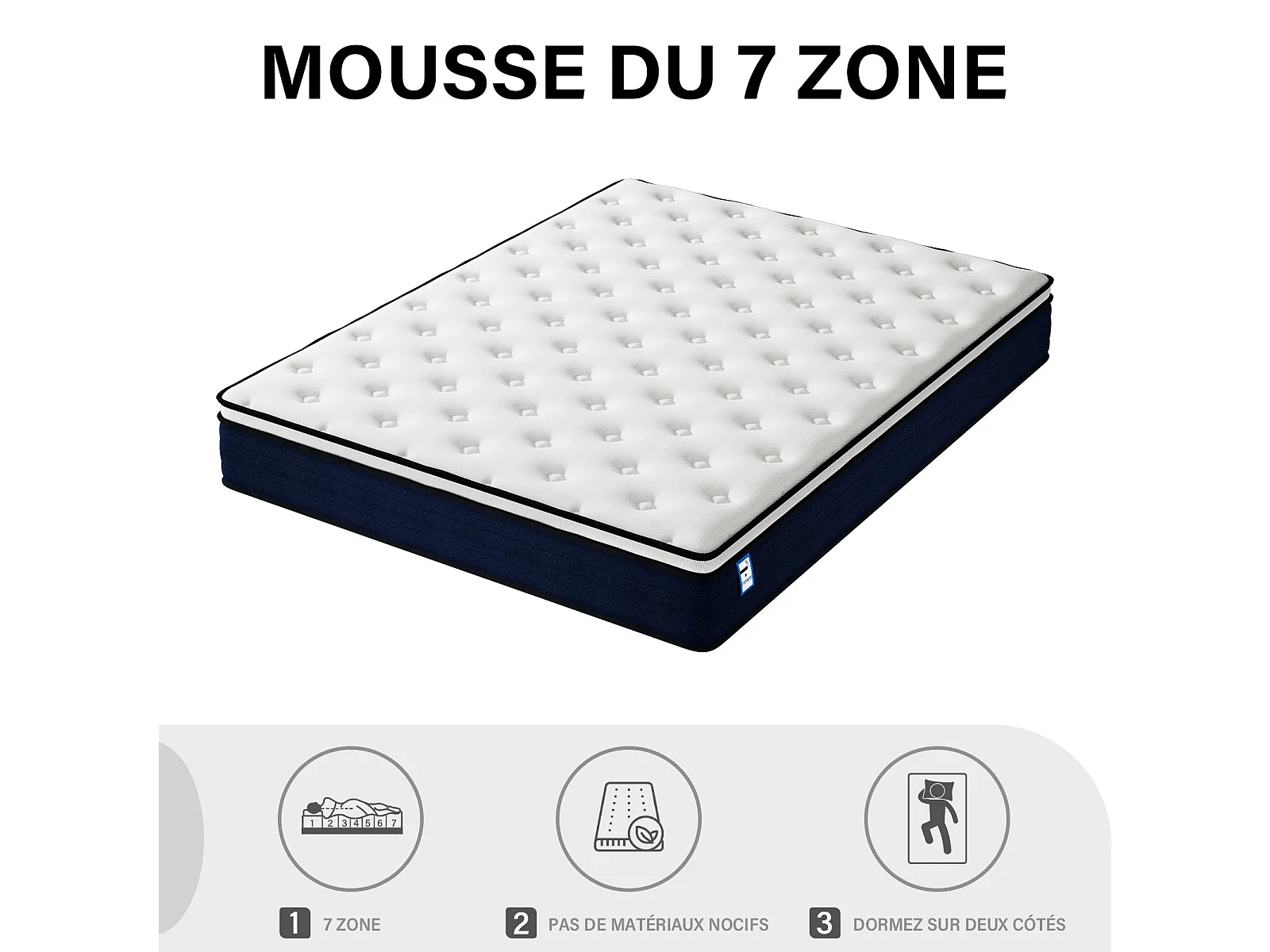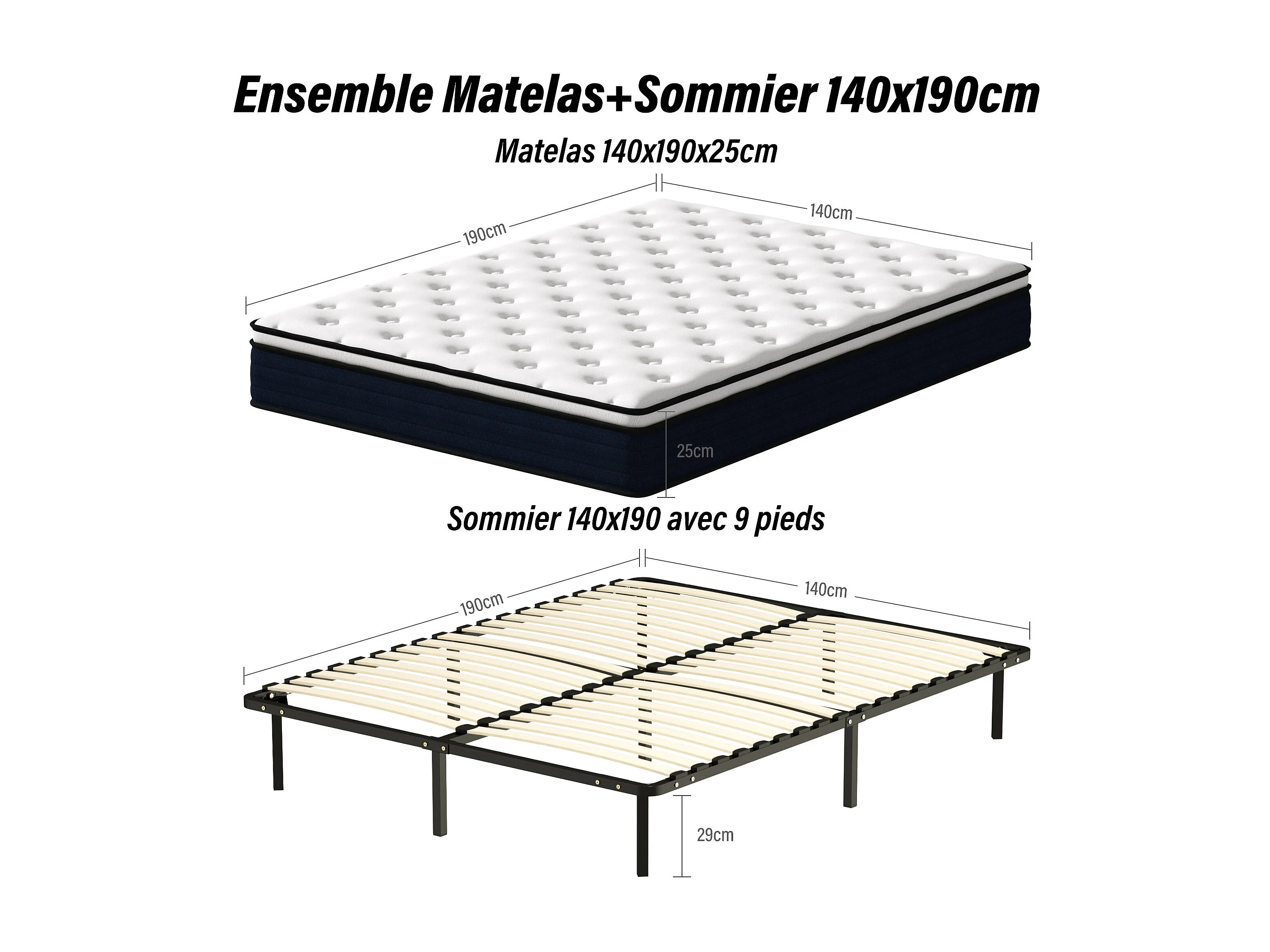 Ensemble Matelas à ressorts +Sommier à Lattes sur Pieds, 140x190cm, Epaisseur du Matelas 25cm