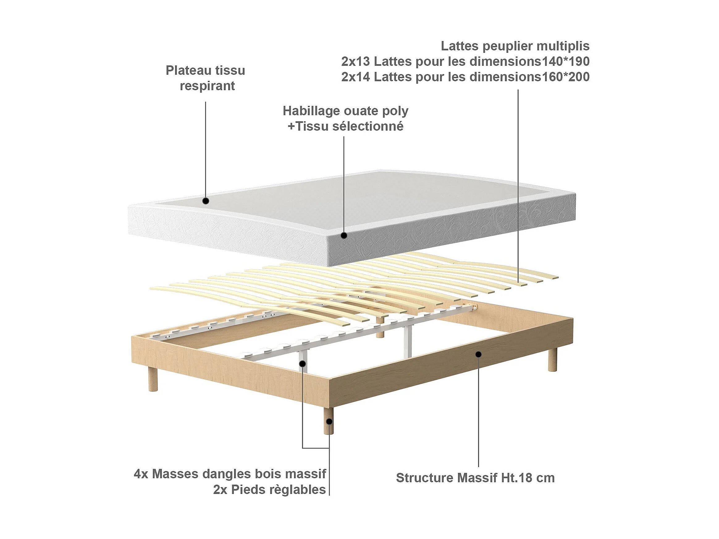 Ensemble Matelas en Mousse+ Lit Sommier Tapissier Déco 160x200cm, Epaisseur du Matelas 18cm
