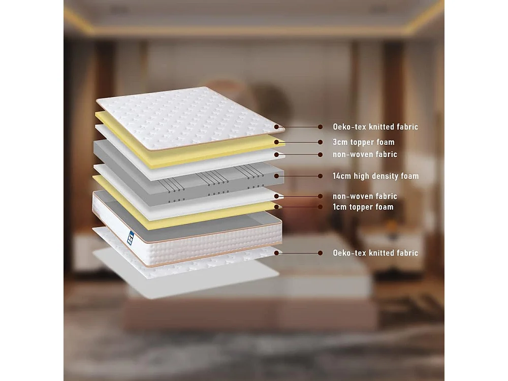 Matelas double en mousse de 17 cm + sommier à lattes 90x190 cm 16 rangées de lattes