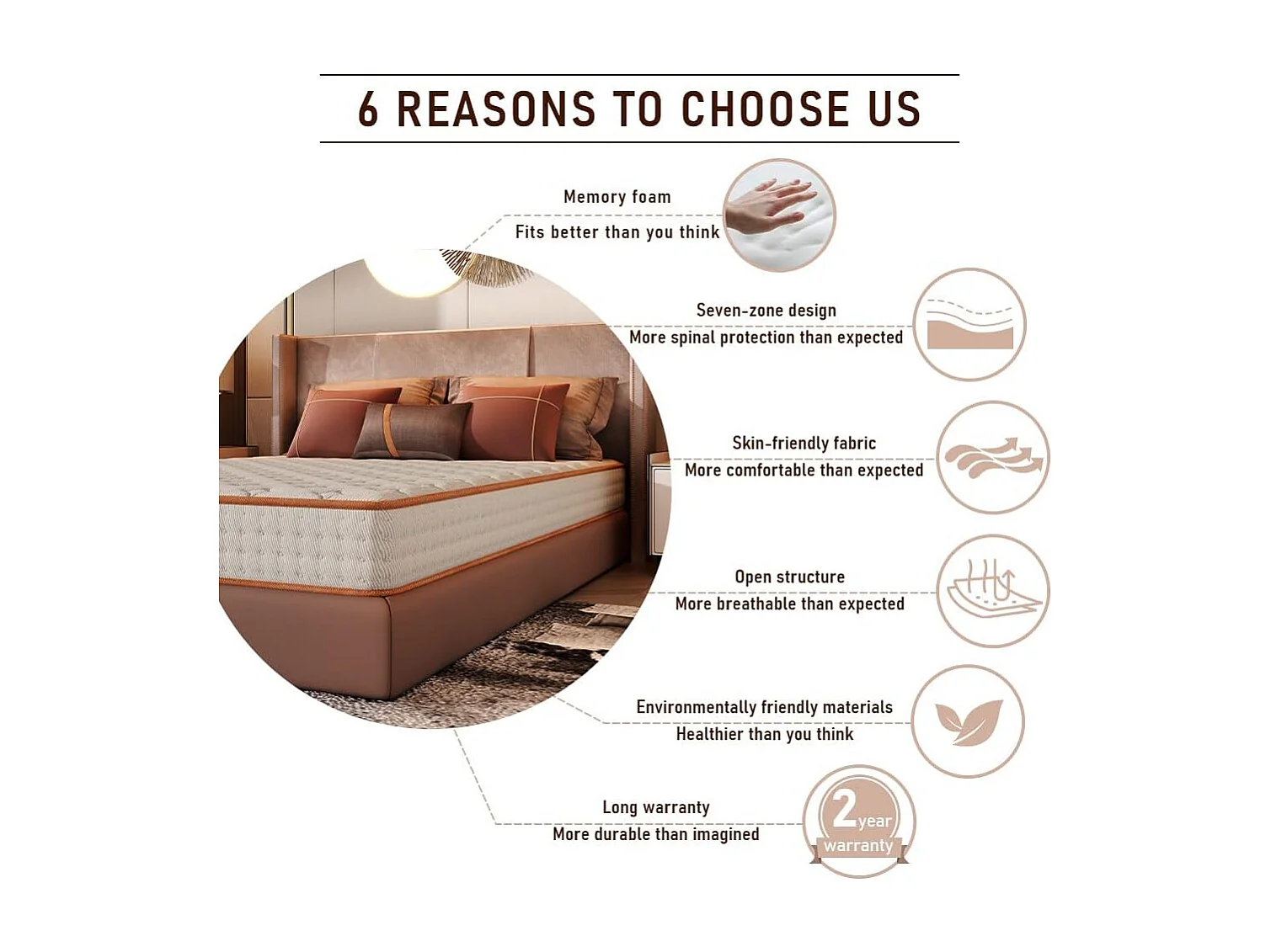 Ensemble Matelas à ressorts +Sommier à Lattes sur Pieds, 90x190cm, Epaisseur du Matelas 22cm