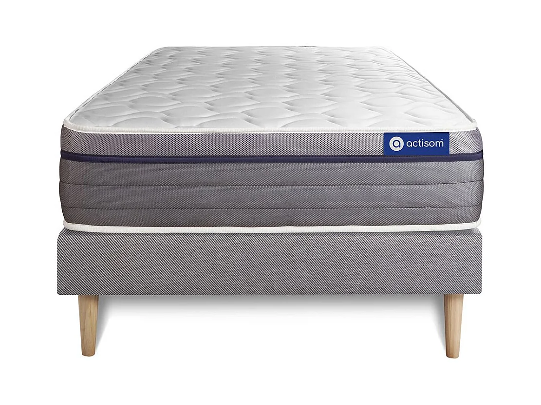 Ensemble ACTIMEMO CONFORT Matelas mémoire de forme 80x190 cm Maxi épaisseur 7zones de confort + sommier KIT gris