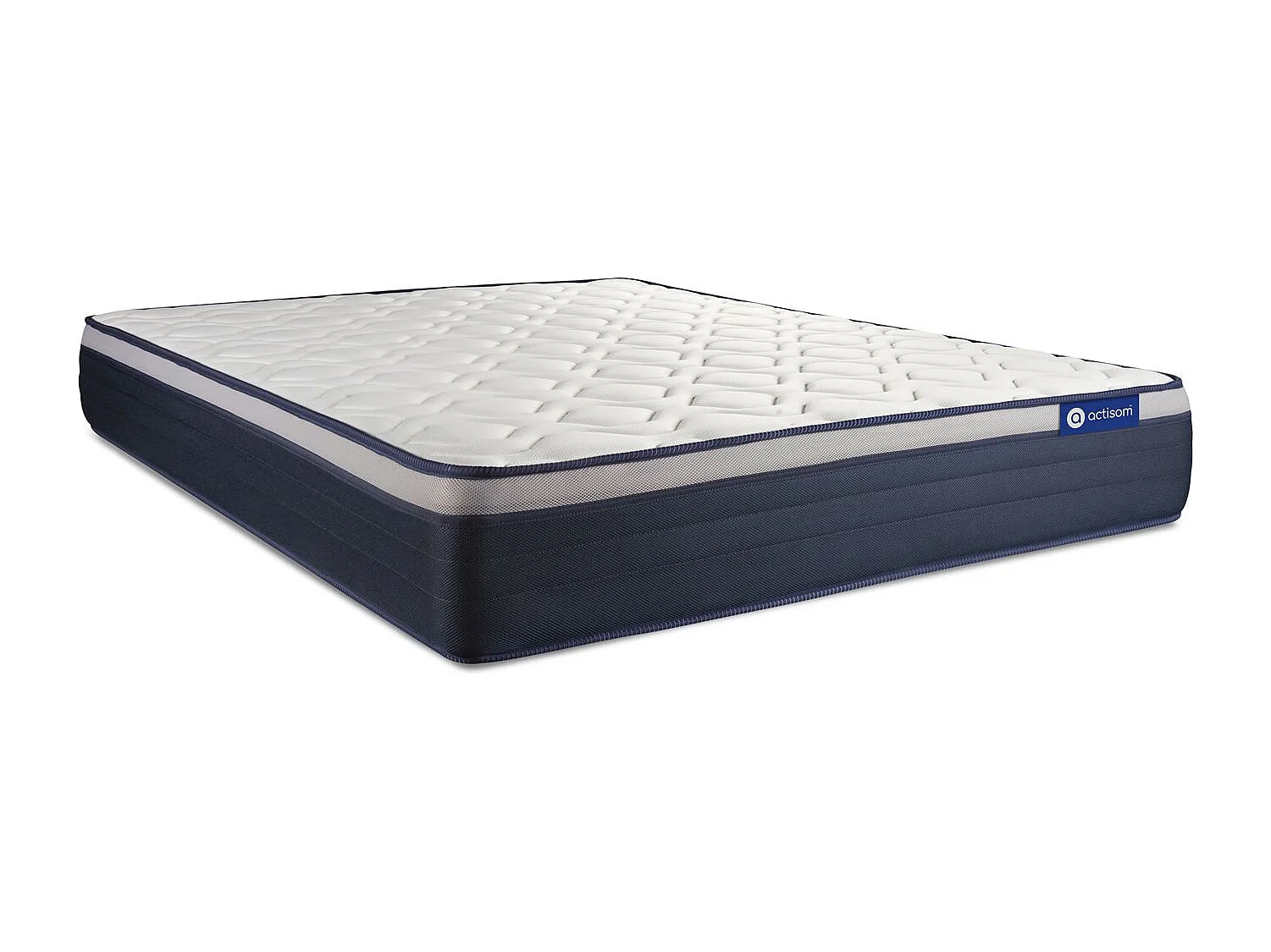 Ensemble ACTIMEMO CONFORT Matelas mémoire de forme 120x190 cm Maxi épaisseur 7zones de confort + sommier KIT gris