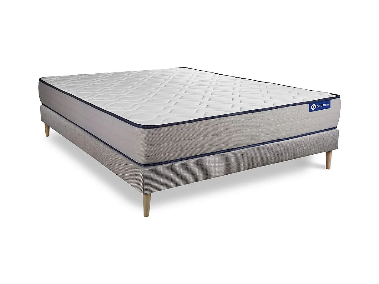 Ensemble matelas Ressorts ensachés + Mémoire de forme ACTIFLEX ERGO 140x190 Maxi épaisseur 5zones confort + sommier KIT gris