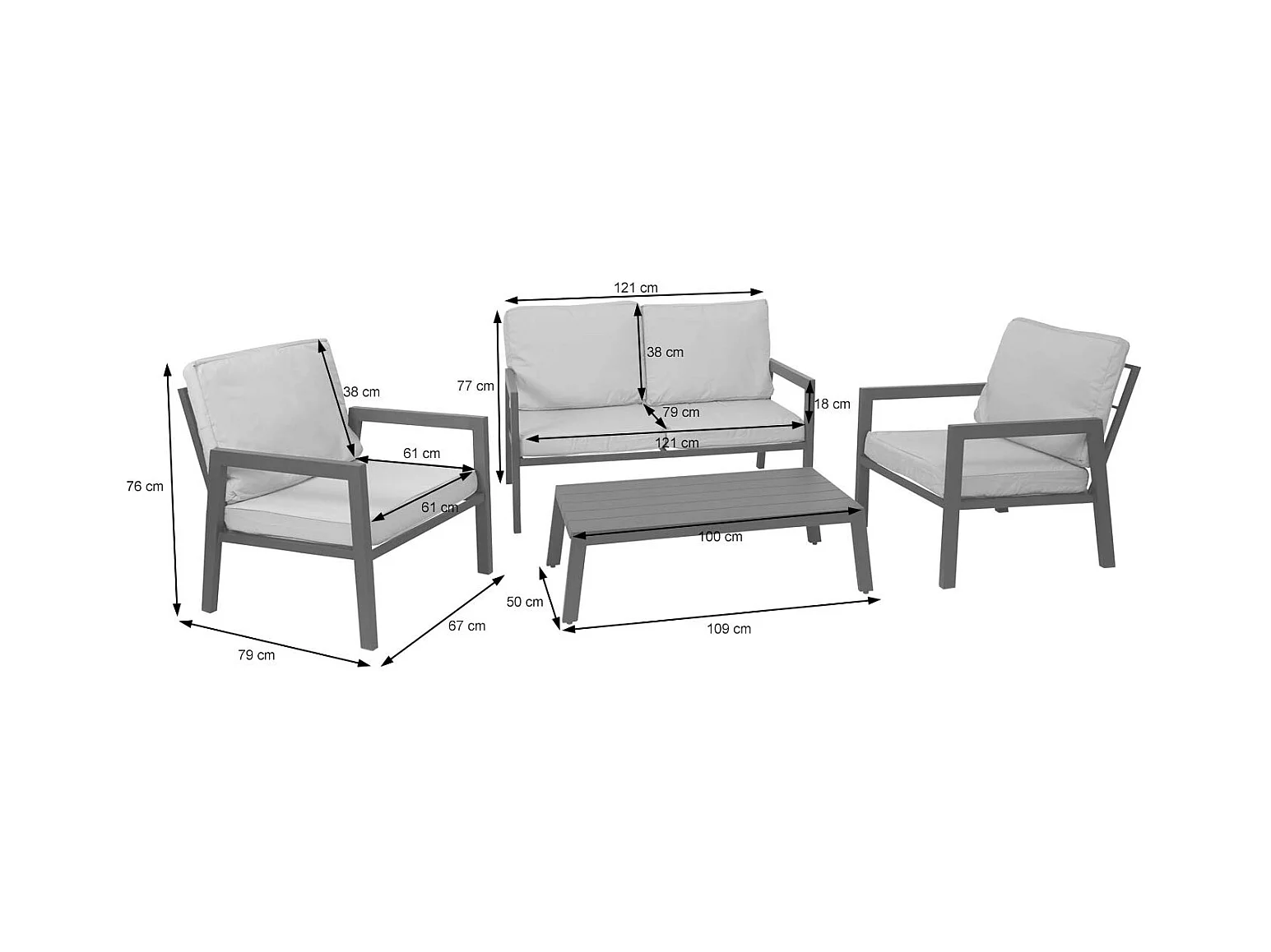 Salon complet de jardin Canapé 2 places et 2 fauteuils