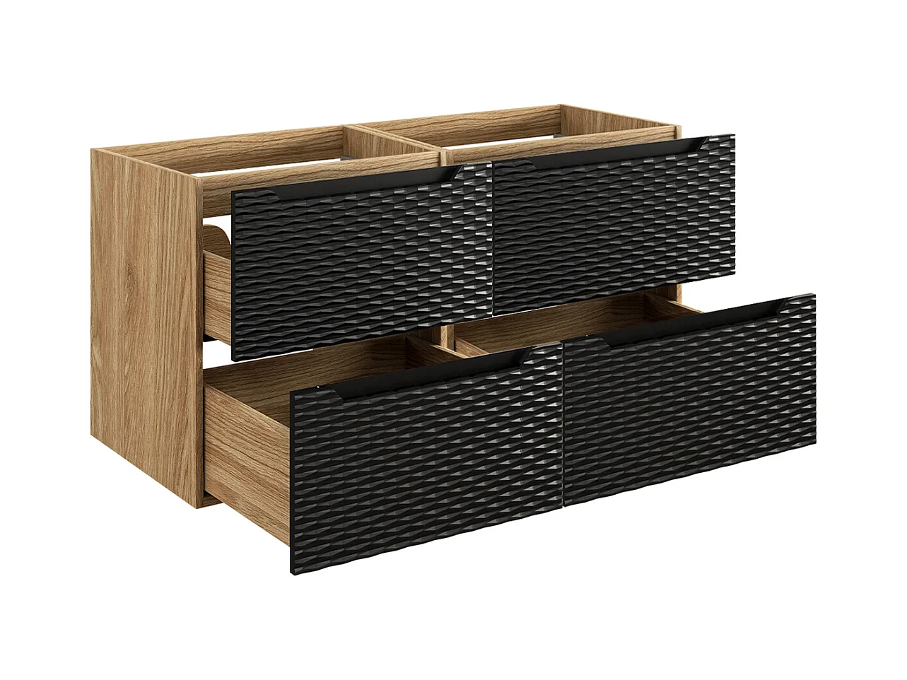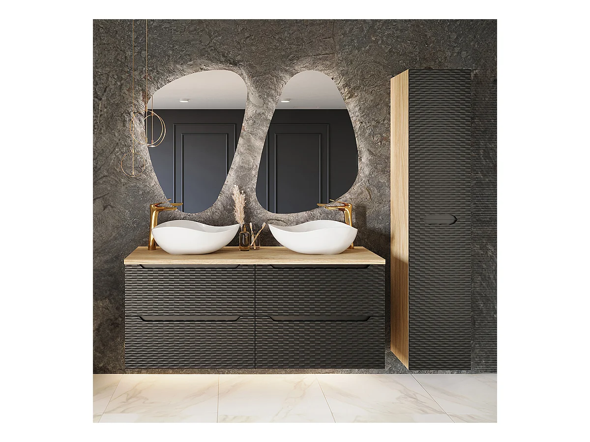 Ensemble meuble double vasque 120cm 4 tiroirs et colonne Elora Noir et bois Cloud