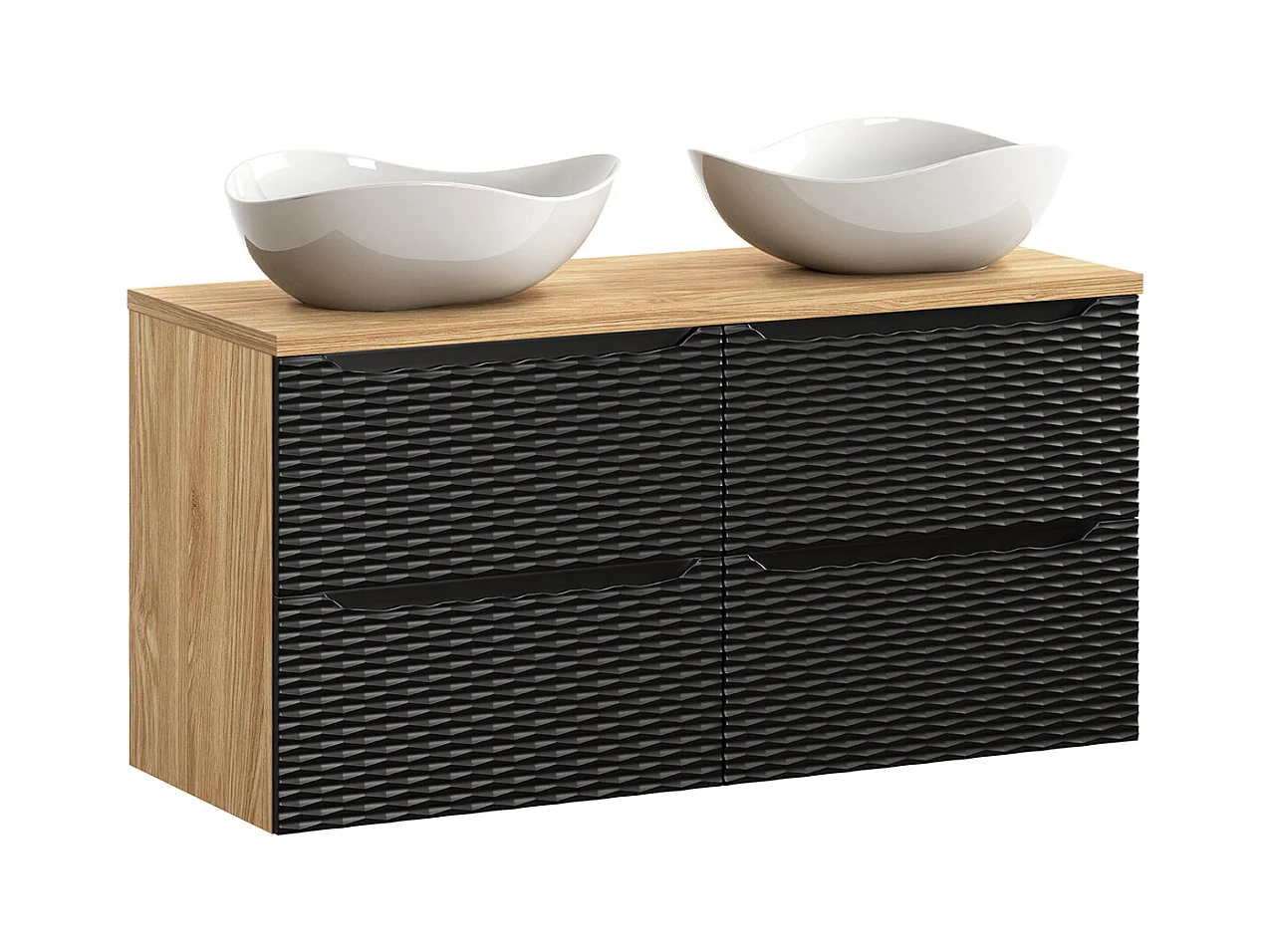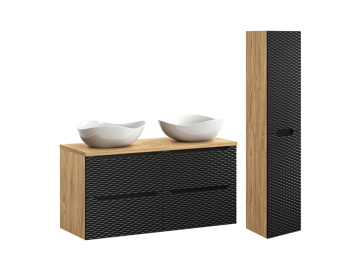 Ensemble meuble double vasque encastrée 120cm 4 tiroirs et colonne Elora Noir et bois