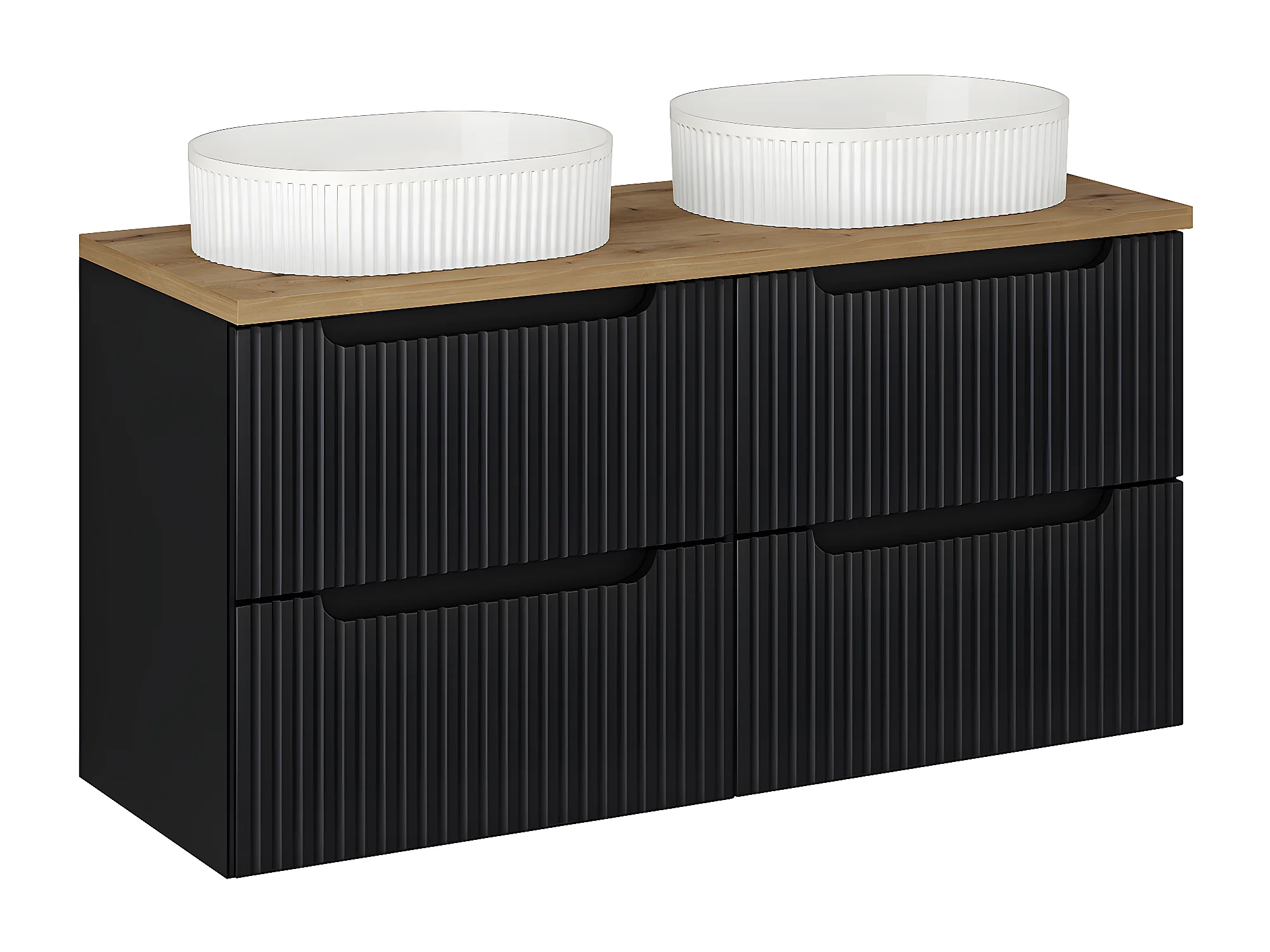 Ensemble meuble double vasque encastrée 120cm 4 tiroirs et colonne Elora Noir et bois