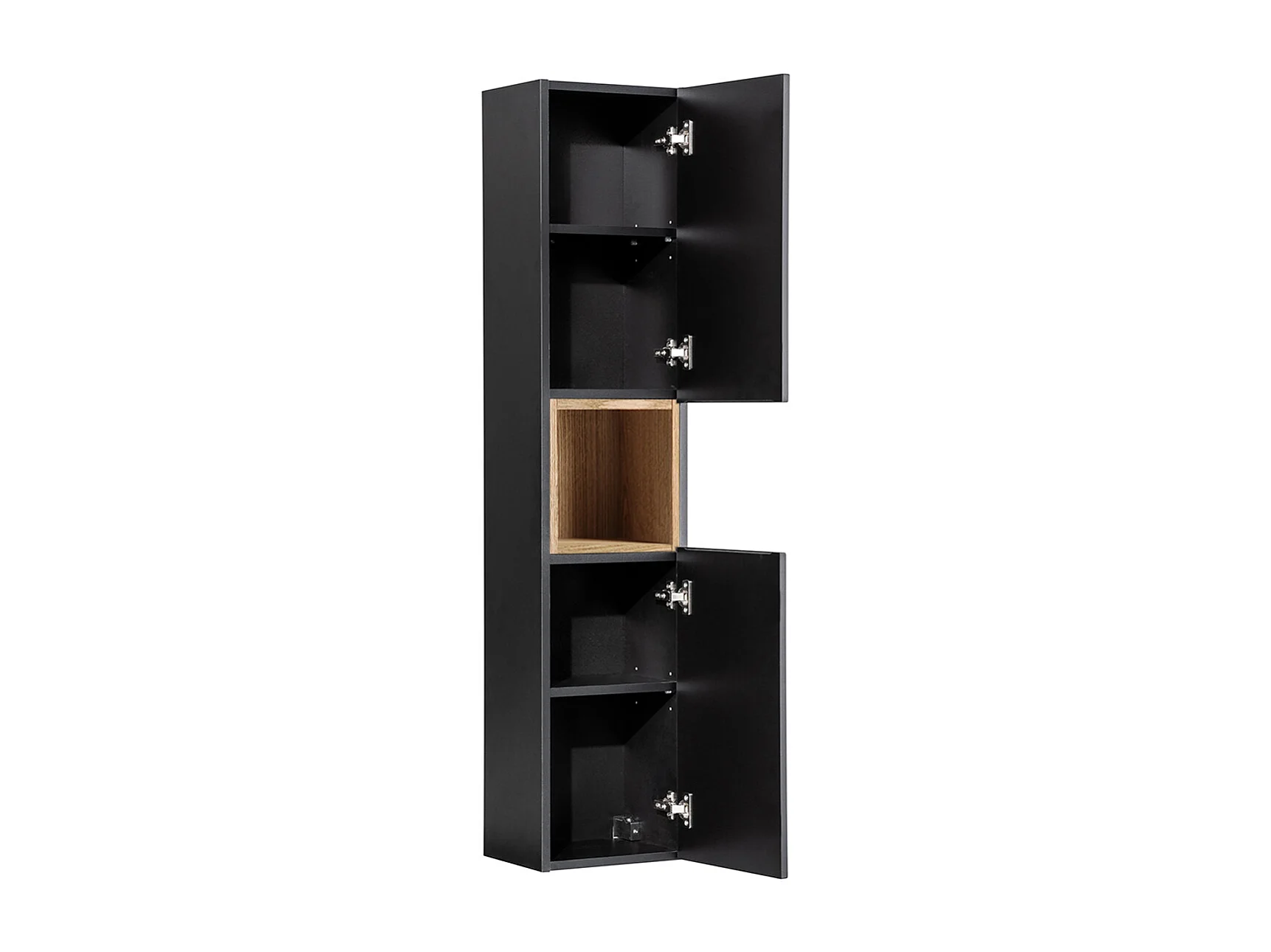 Ensemble meuble double vasque 160cm panier à linge et colonne Riva Noir et Bois