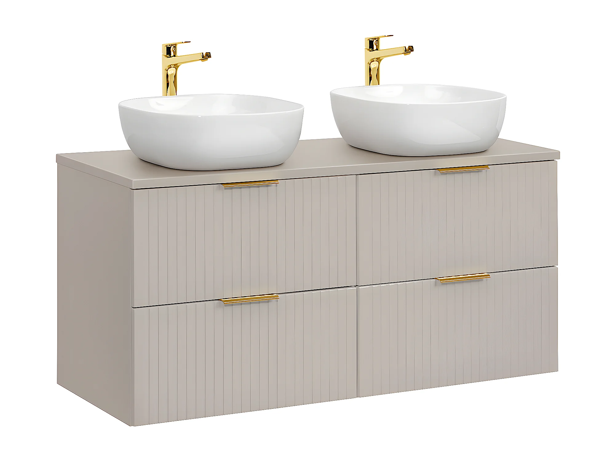 Ensemble meuble simple vasque 120cm panier à linge et colonne Alba Cachemire