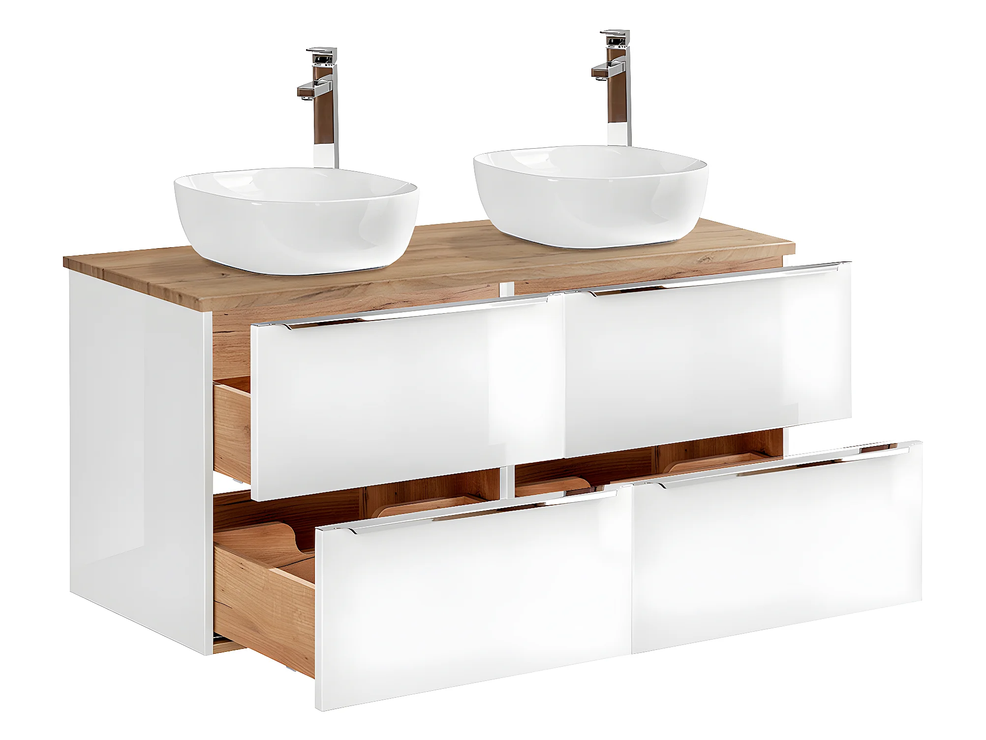 Ensemble meuble double vasque 120cm 2 tiroirs et colonne Livia Blanc et Bois