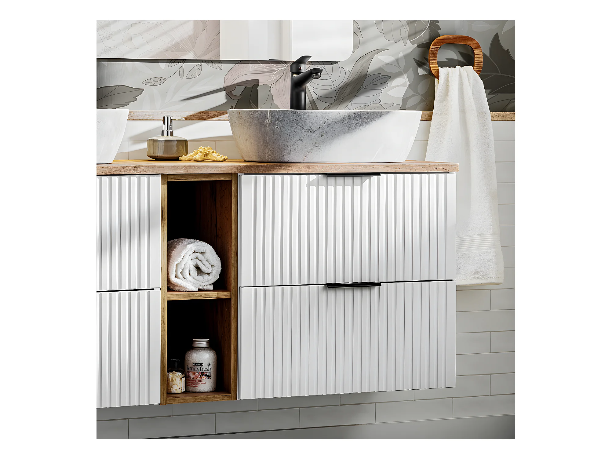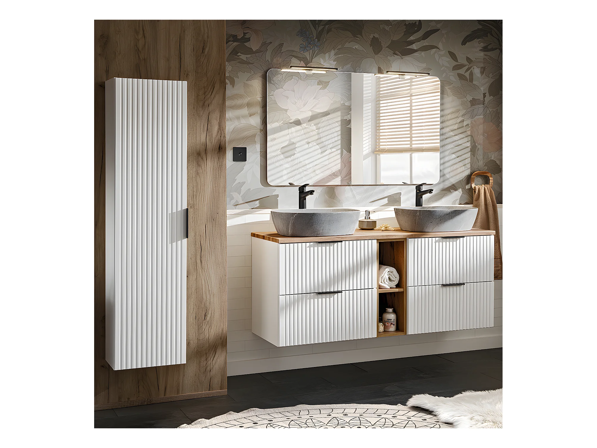 Ensemble meuble double vasque 140cm 2 niches et colonne Adriel Blanc et effet Pierre
