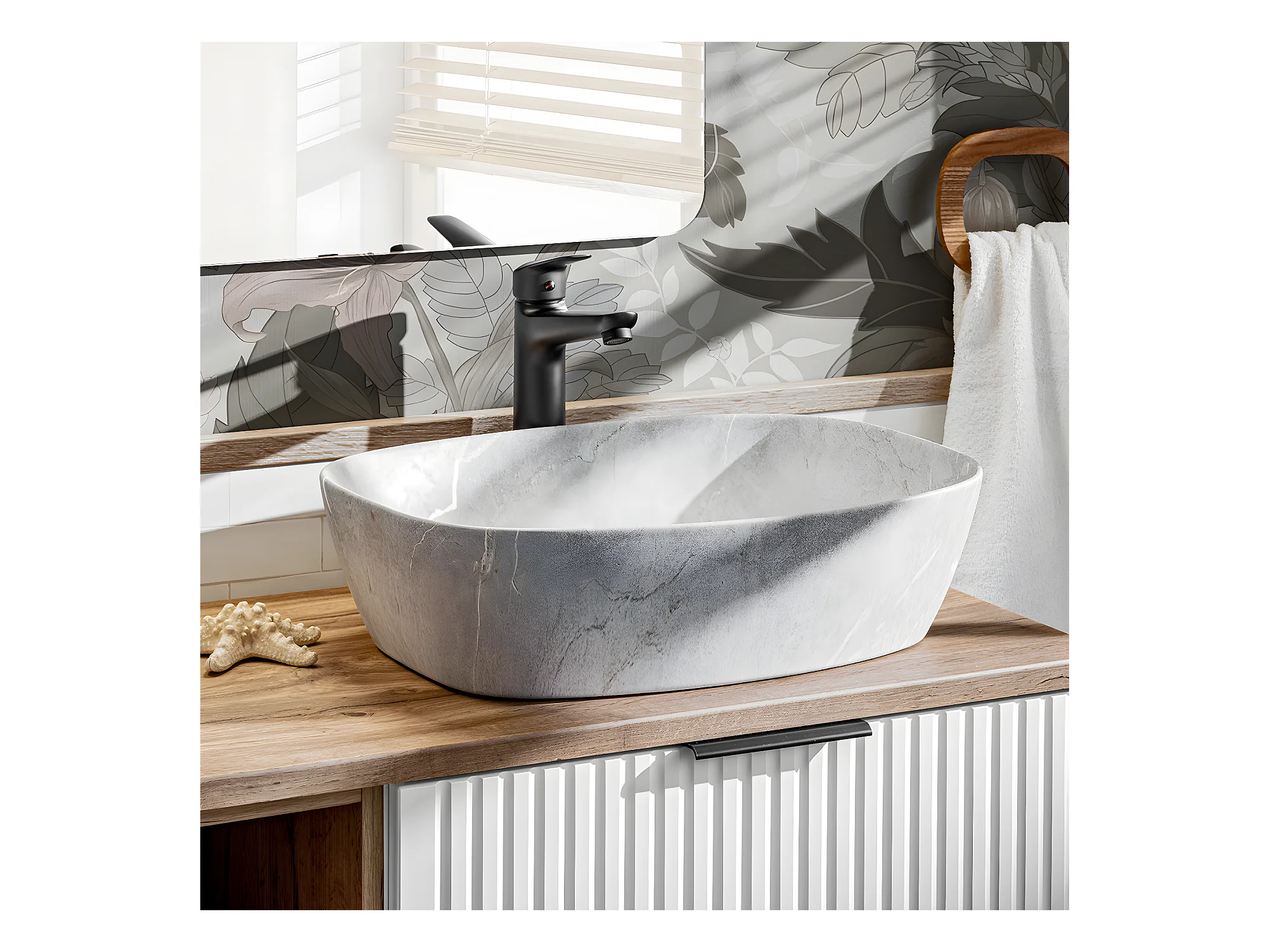 Ensemble meuble simple vasque 60cm et colonne Adriel Blanc et effet Pierre