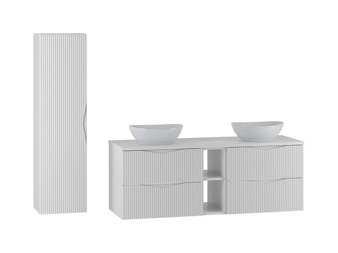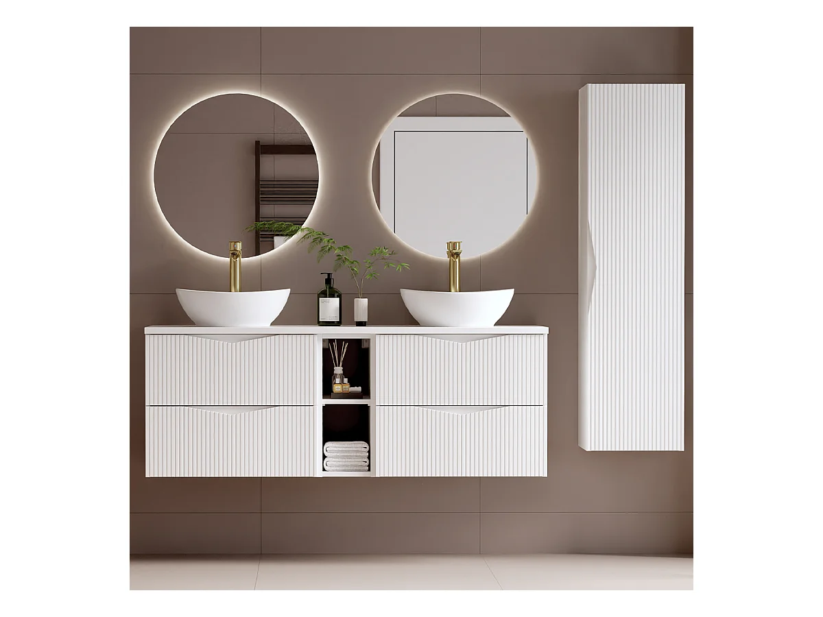 Ensemble meuble double vasque 140cm 2 niches et colonne Tao Blanc