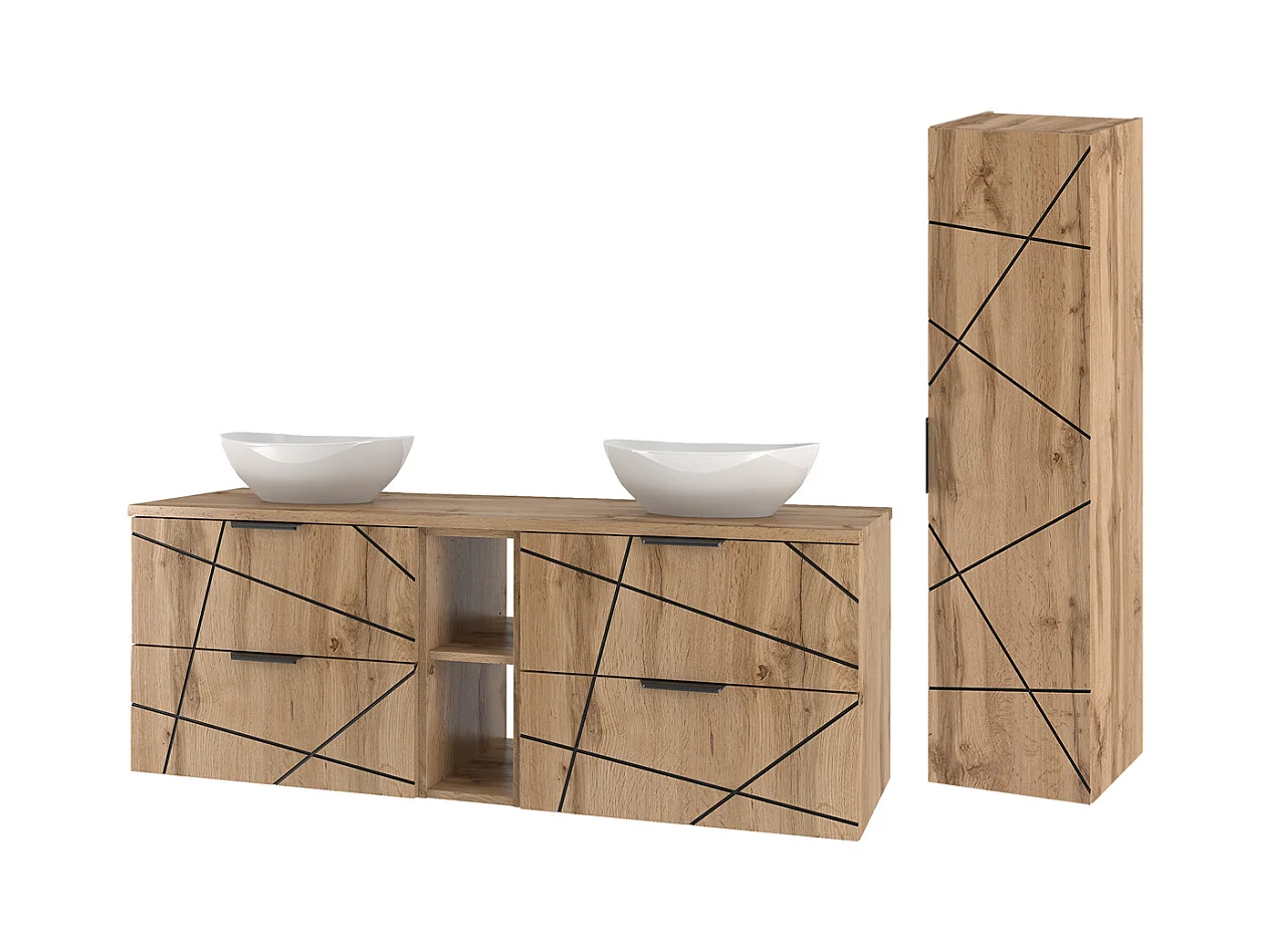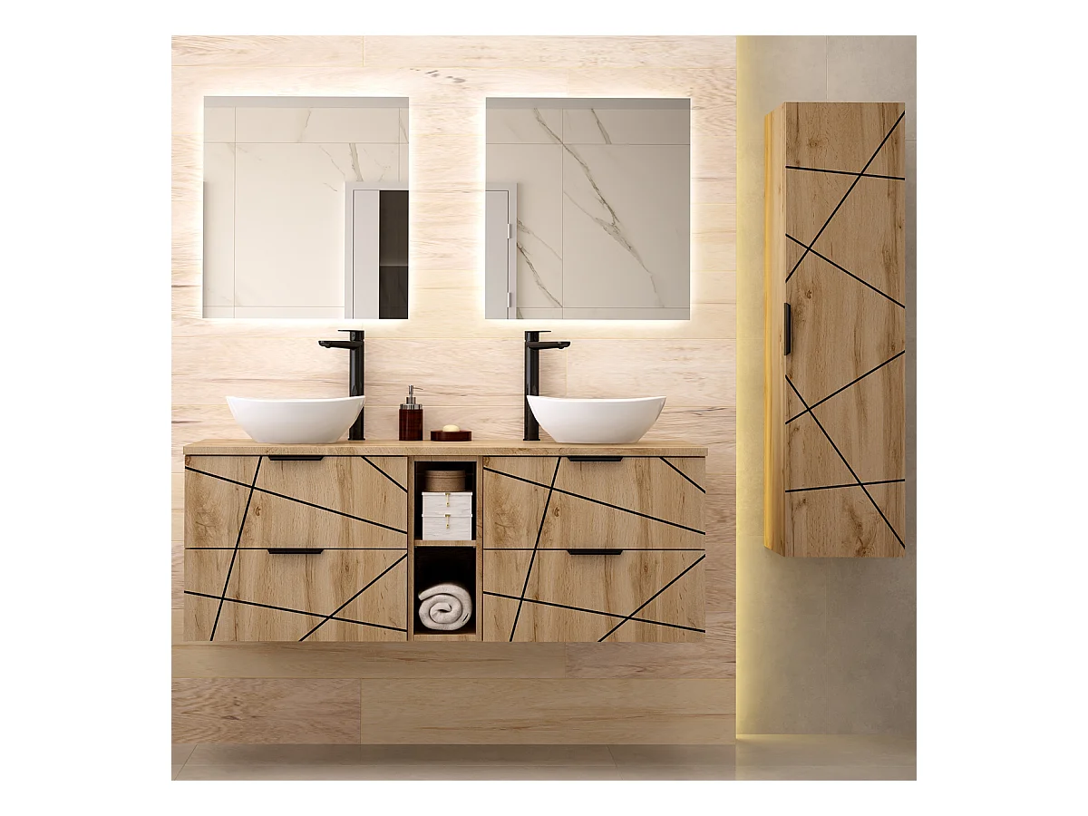 Ensemble meuble double vasque 140cm 2 niches et colonne Teren Bois