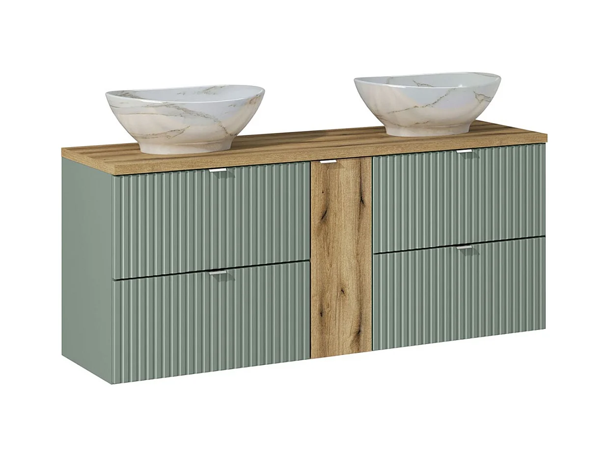 Ensemble meuble double vasque 140cm 4 tiroirs et colonne Jade Vert et Bois