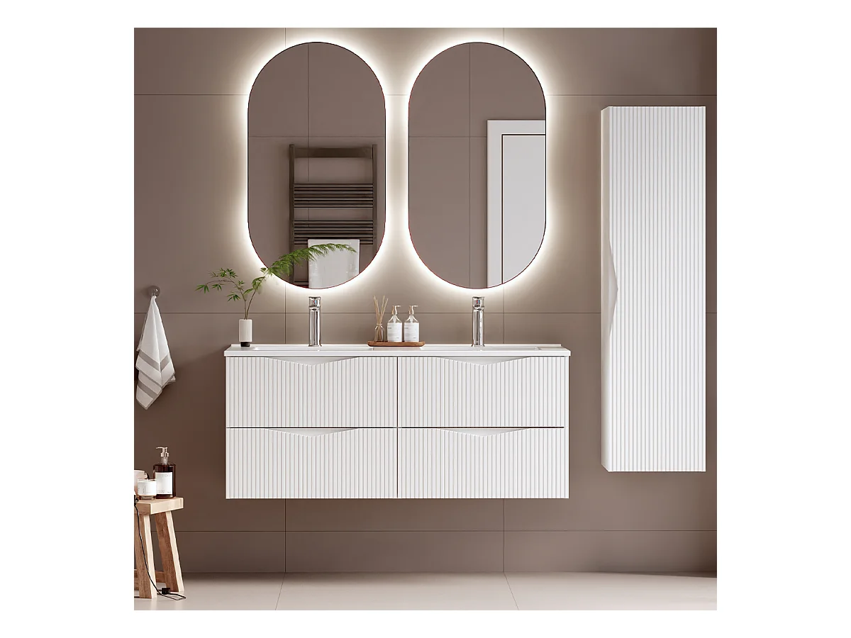 Ensemble meuble double vasque encastrée 120cm et colonne Tao Blanc