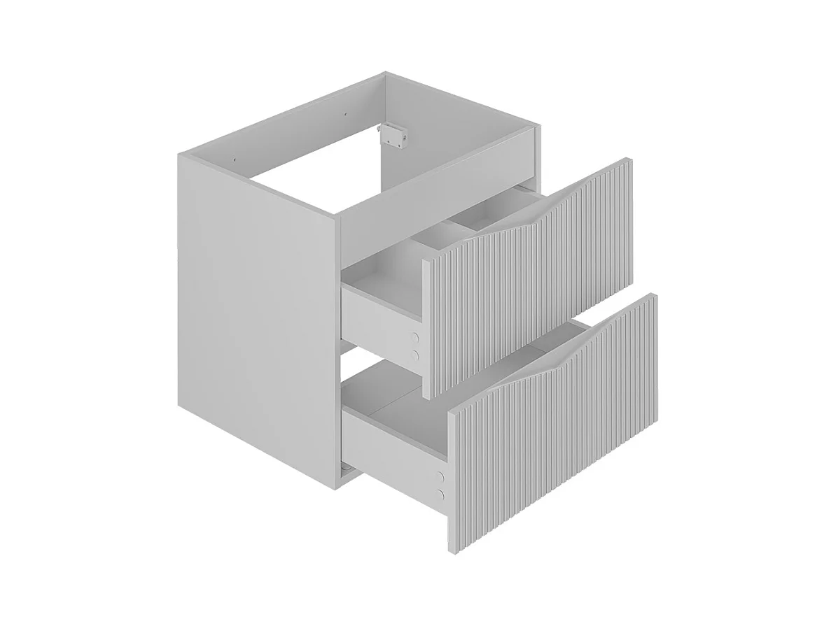 Meuble de salle de bain suspendu strié avec vasque à encastrer et colonne - Blanc mat - 60 cm - ZEVINI