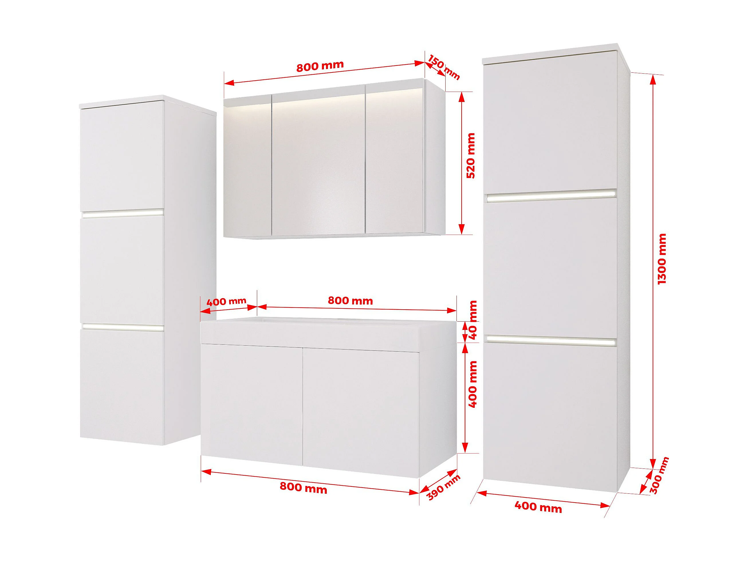 Ensemble meuble salle de bain, Blanc Mat, 160 x 130 cm