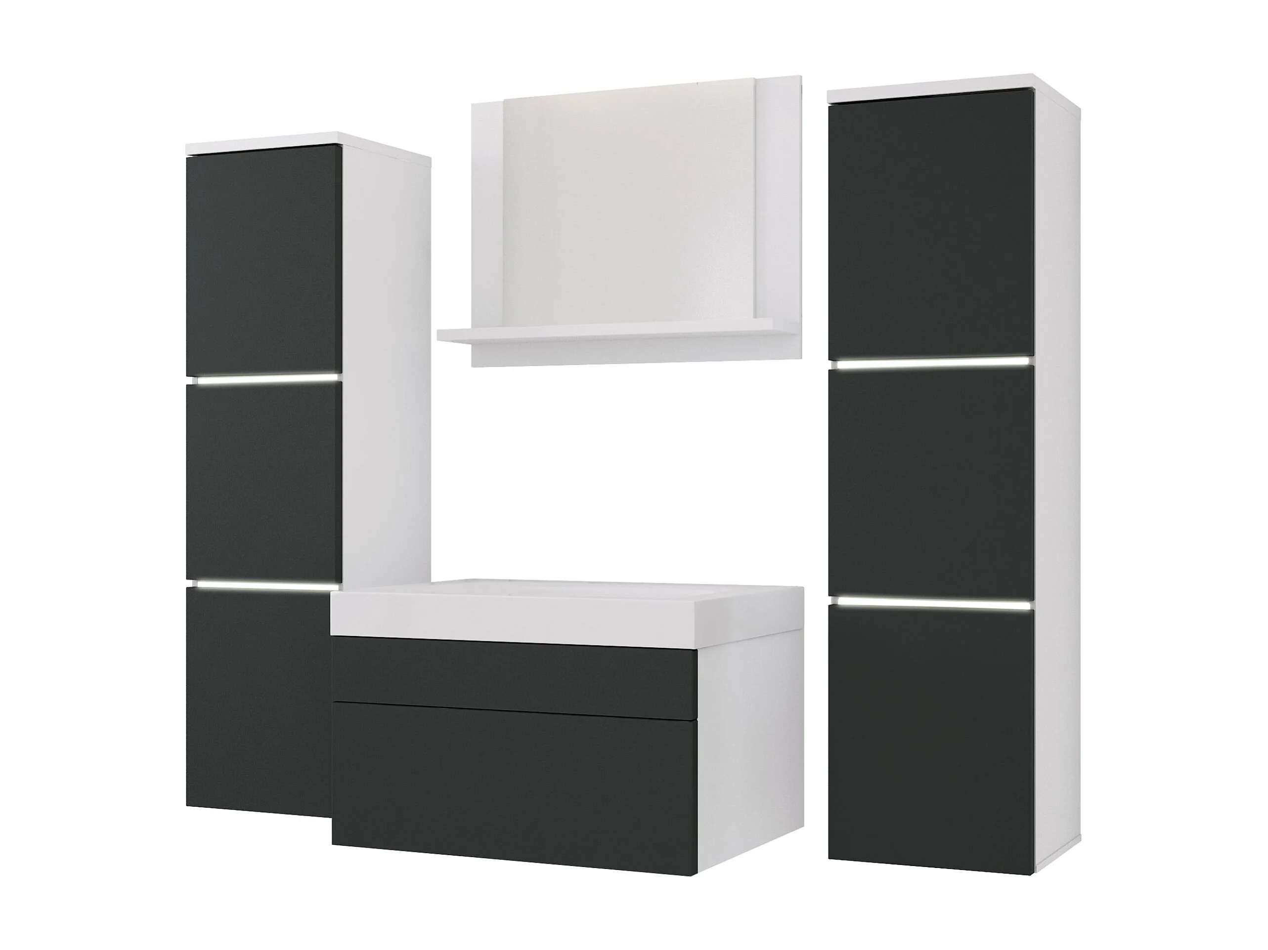 Ensemble meuble salle de bain, Blanc Mat, Antracite, 120 x 110 cm