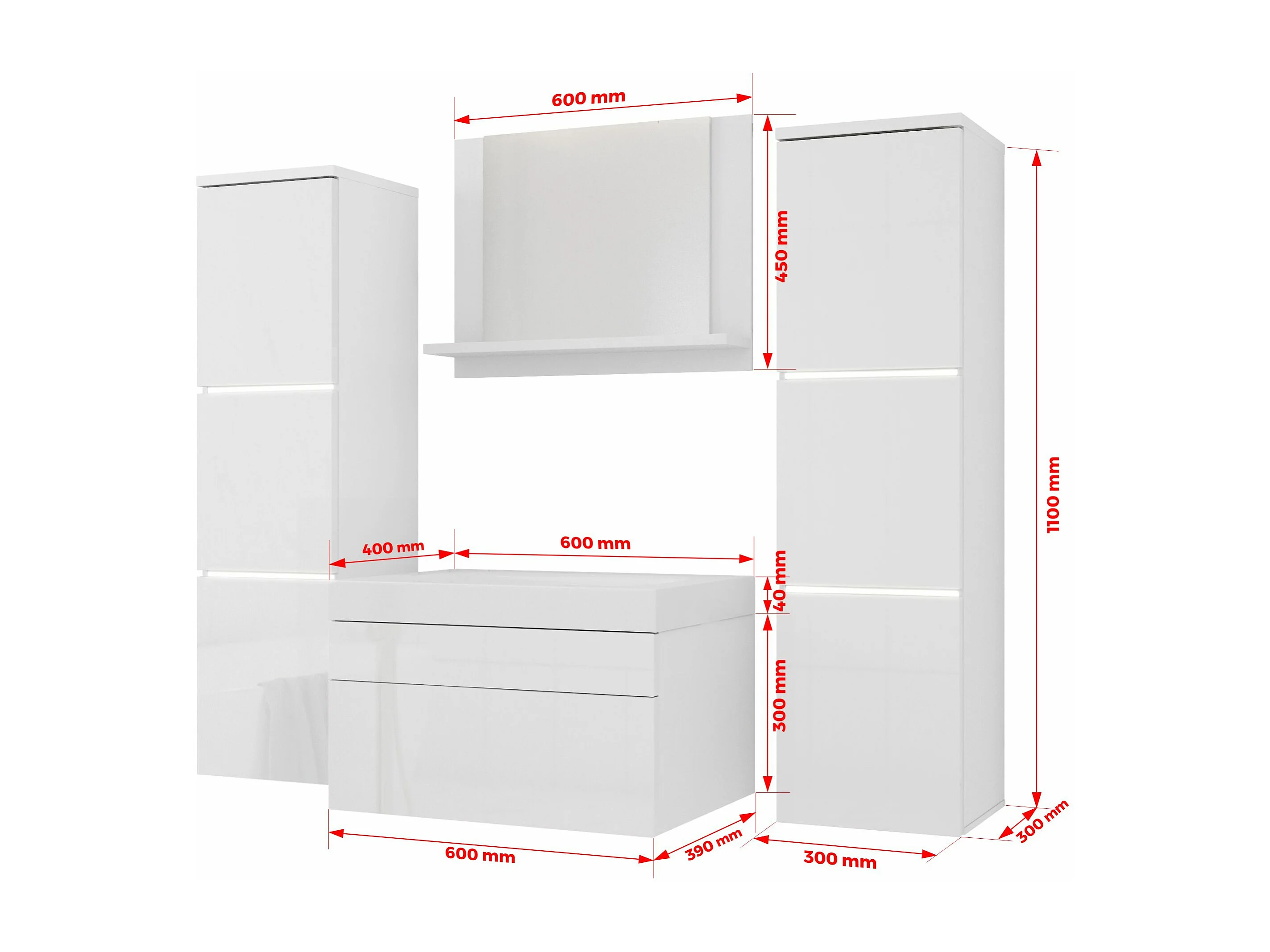 Ensemble meuble salle de bain, Blanc Mat, Blanc Brillant, 90 x 110 cm