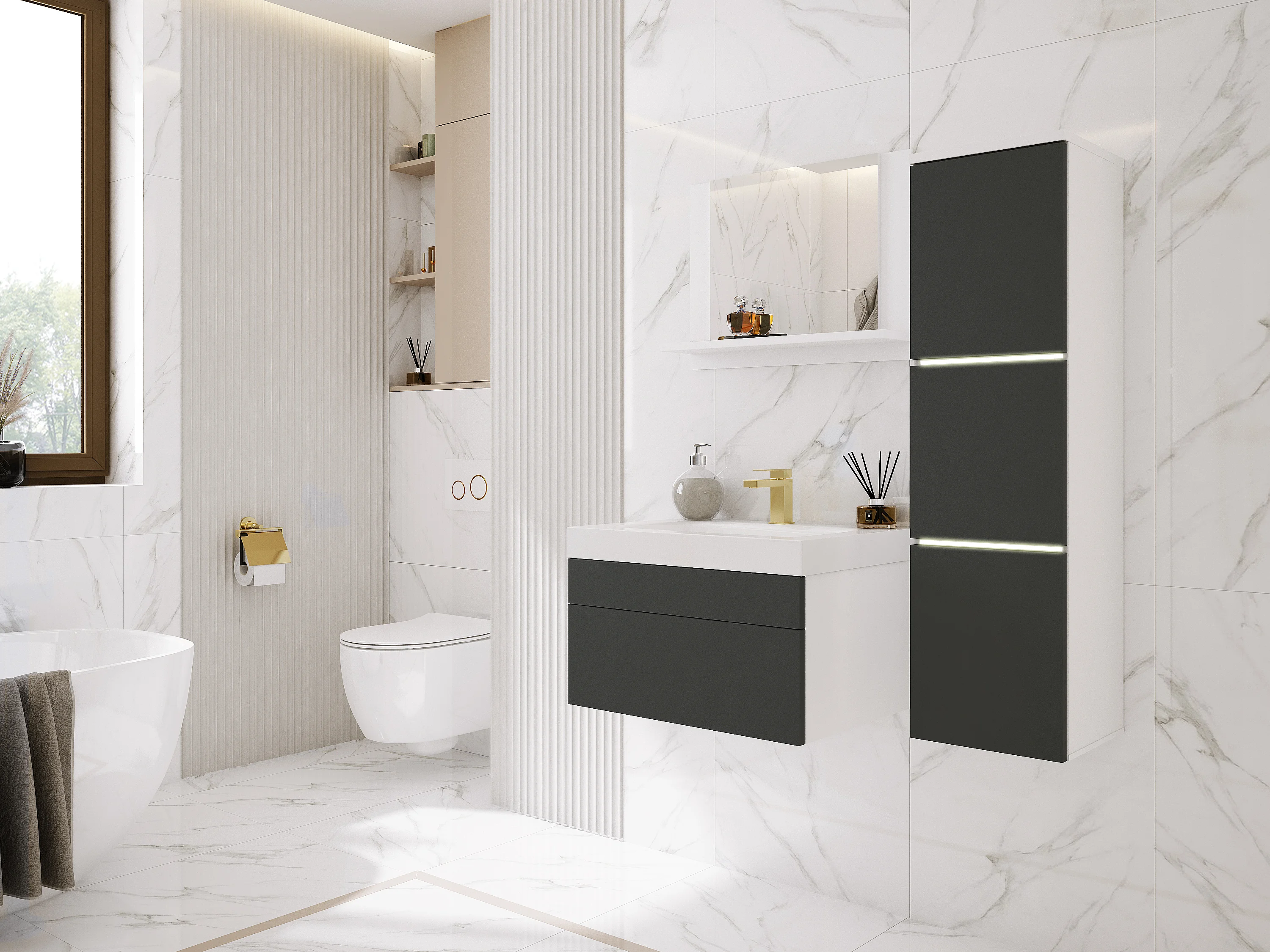 Ensemble meuble salle de bain, Blanc Mat, Antracite, 90 x 110 cm