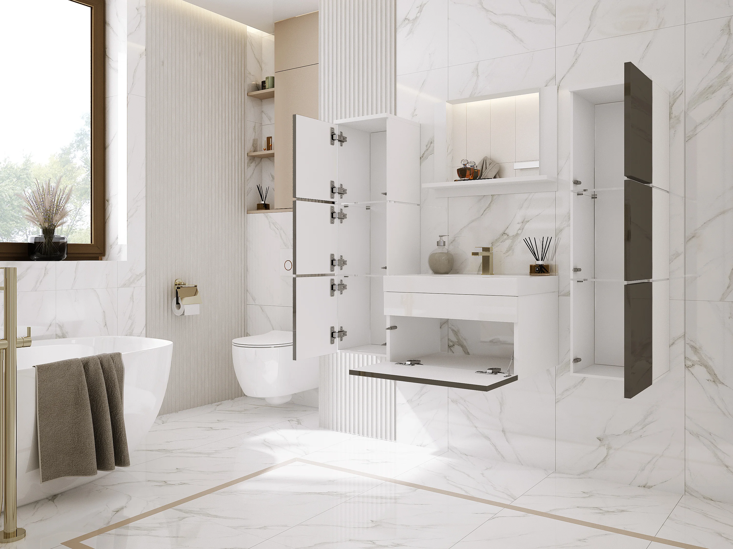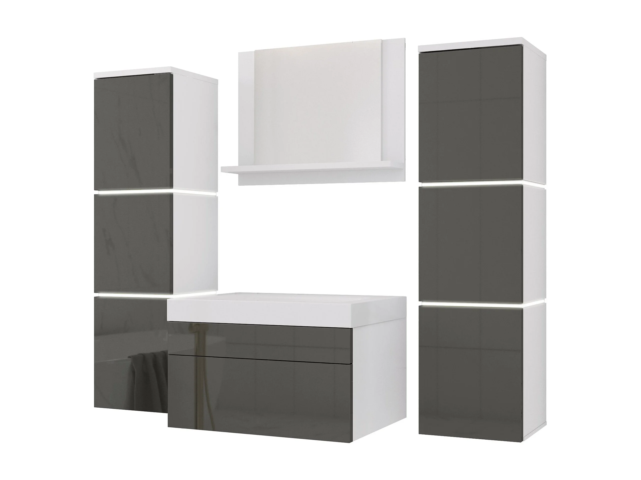 Ensemble meuble salle de bain, Blanc Mat, Gris Brillant, 120 x 110 cm