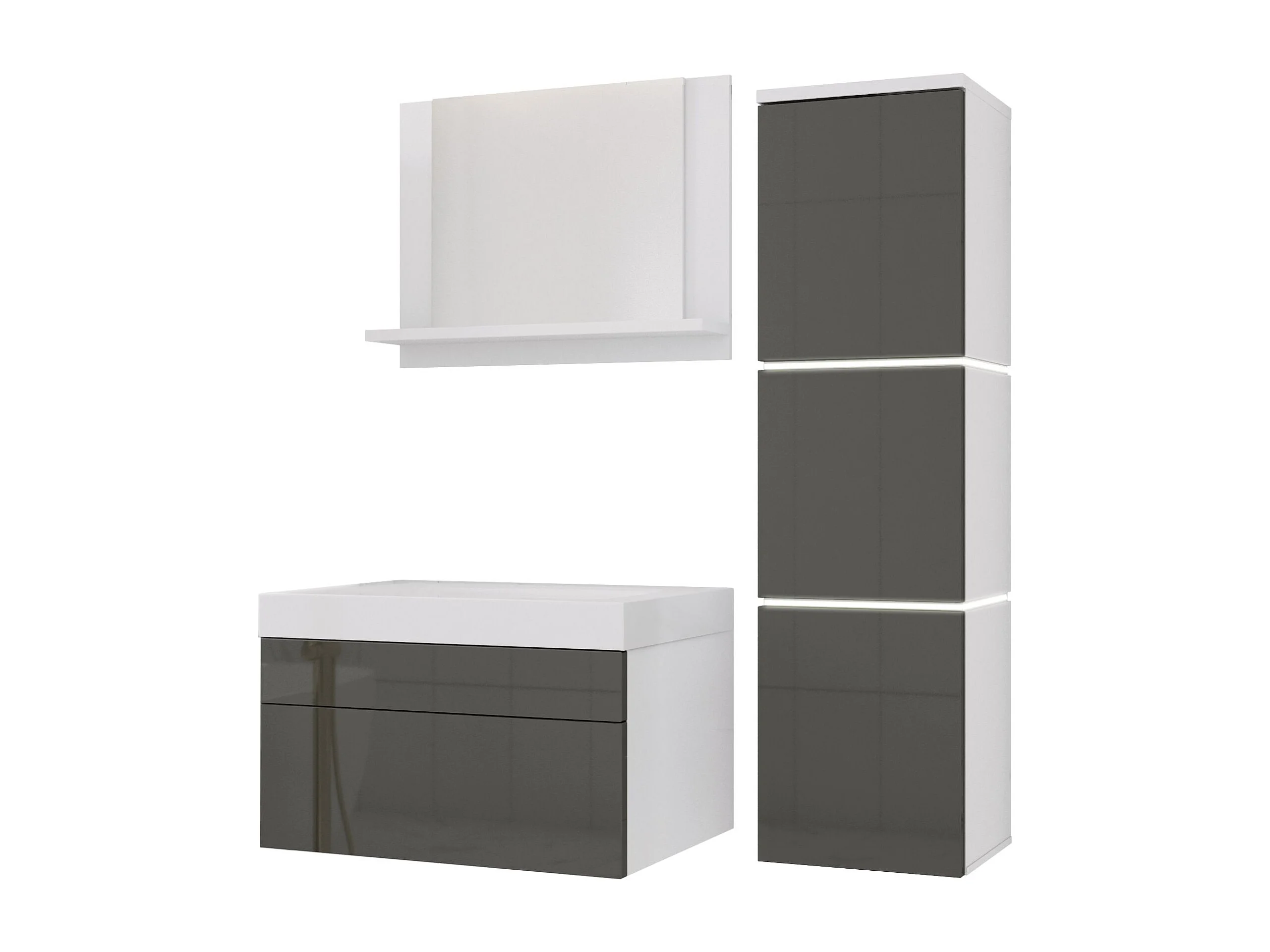 Ensemble meuble salle de bain, Blanc Mat, Gris Brillant, 90 x 110 cm