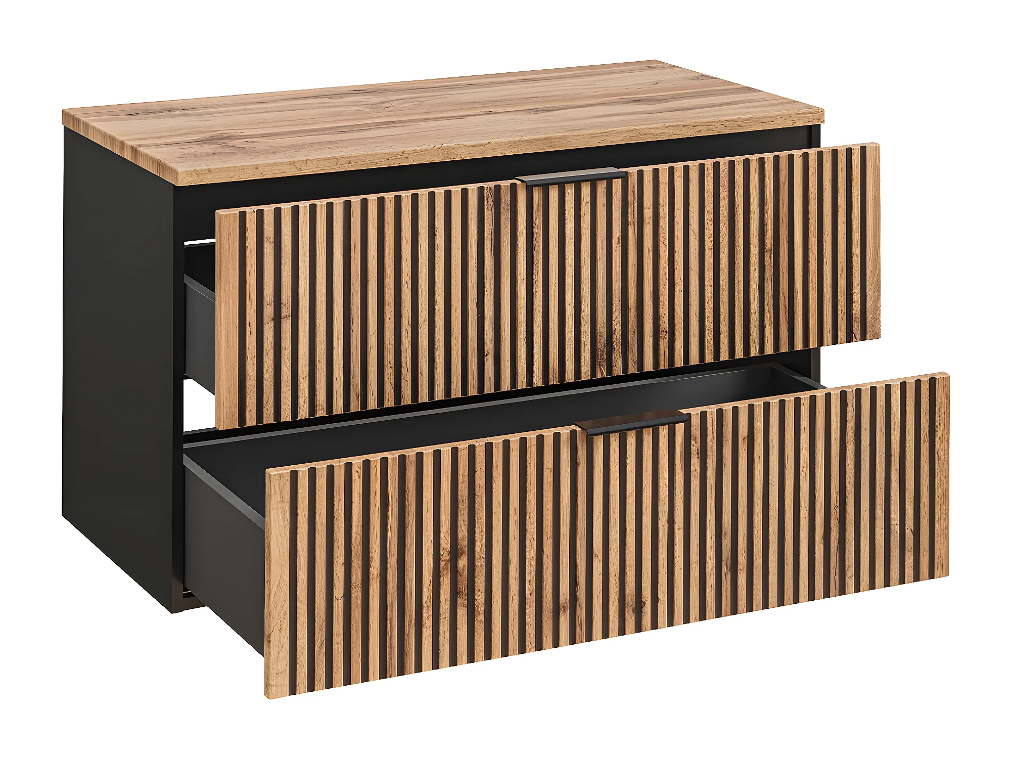 Ensemble meuble simple vasque 100cm et colonne Gaia Bois et Noir - Vasque Noir