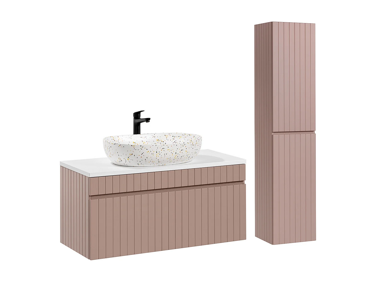 Ensemble meuble simple vasque encastrée 100cm et colonne Zelie Rose