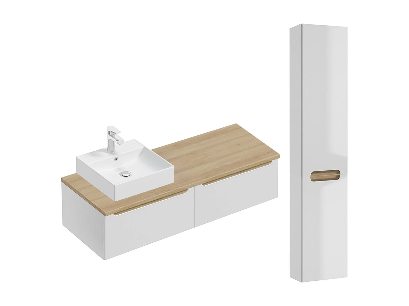 Ensemble meuble simple vasque 120cm 2 tiroirs et colonne Livia Blanc et Bois
