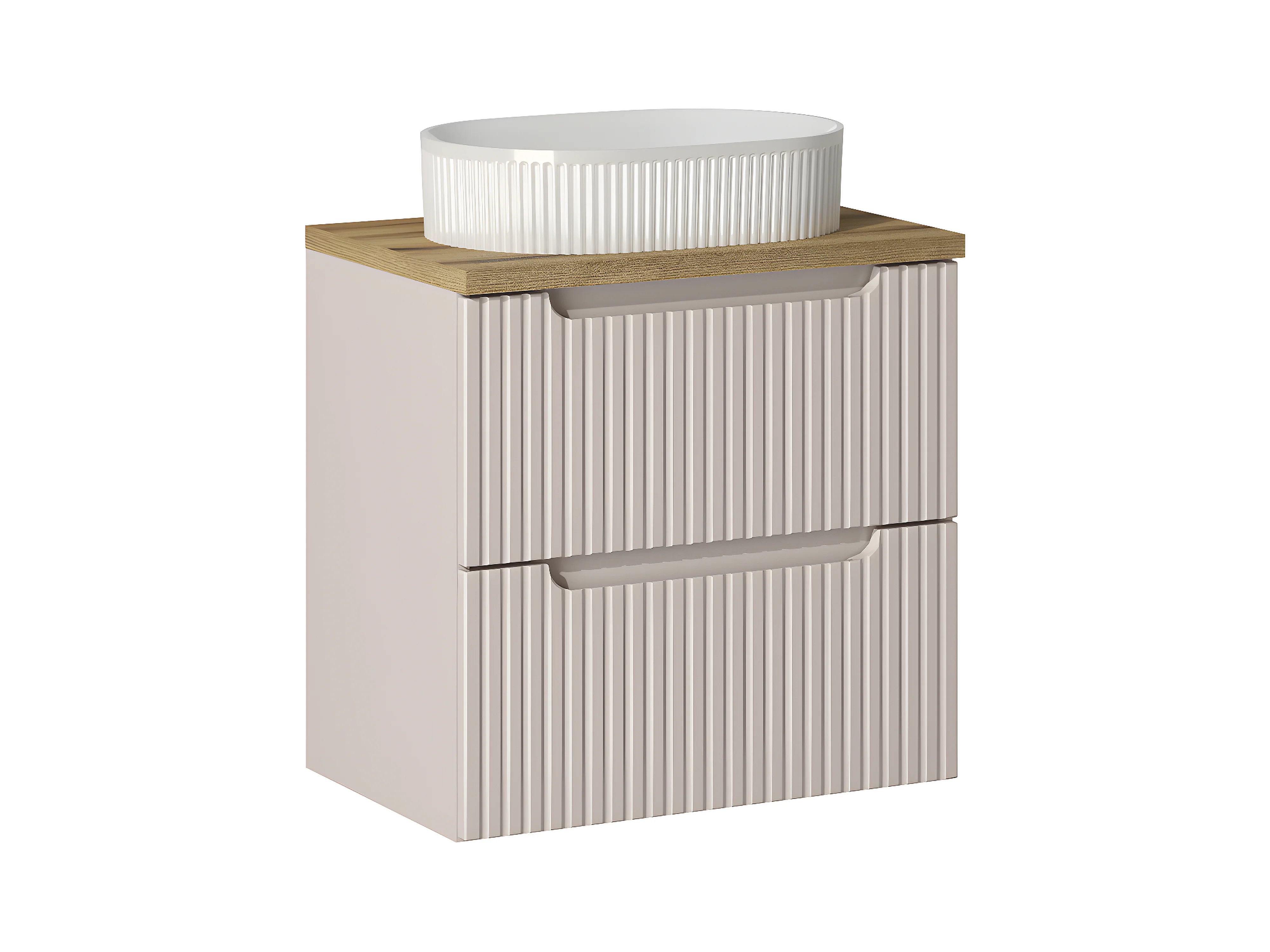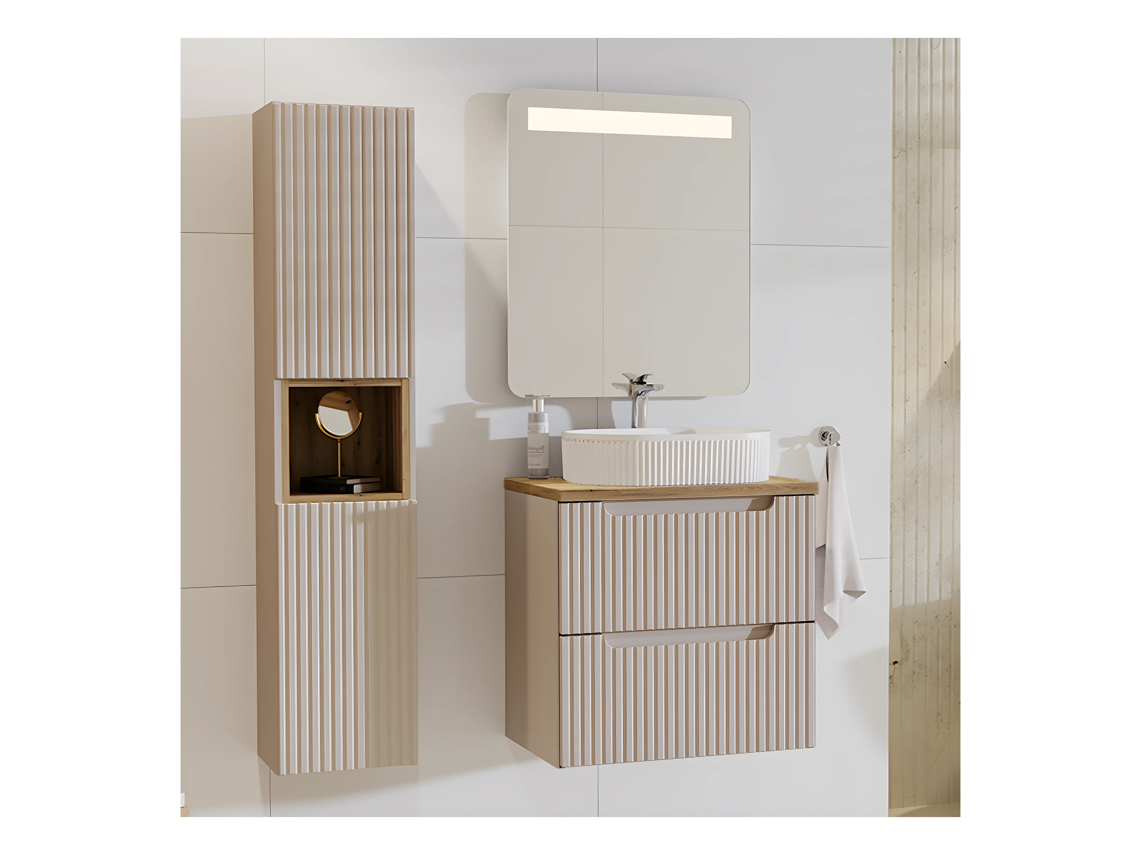 Ensemble meuble simple vasque encastrée 60cm 2 tiroirs et colonne Riva Cachemire et Bois