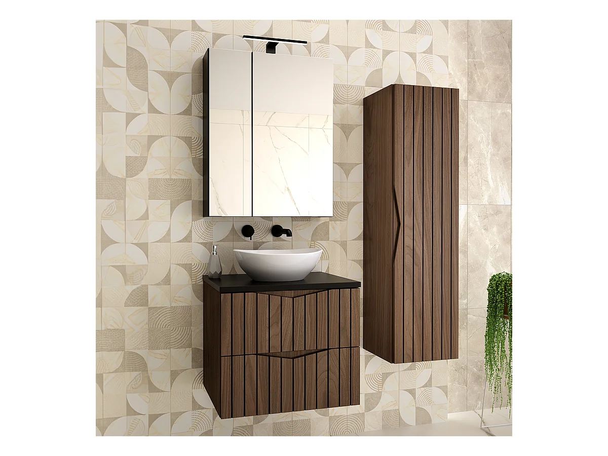 Ensemble meuble simple vasque 60cm et colonne Siena bois et noir