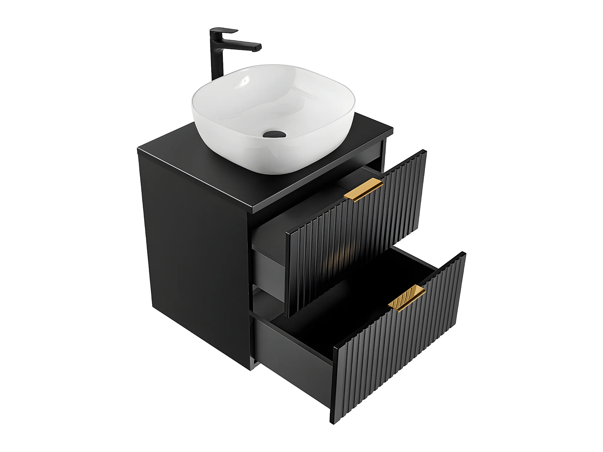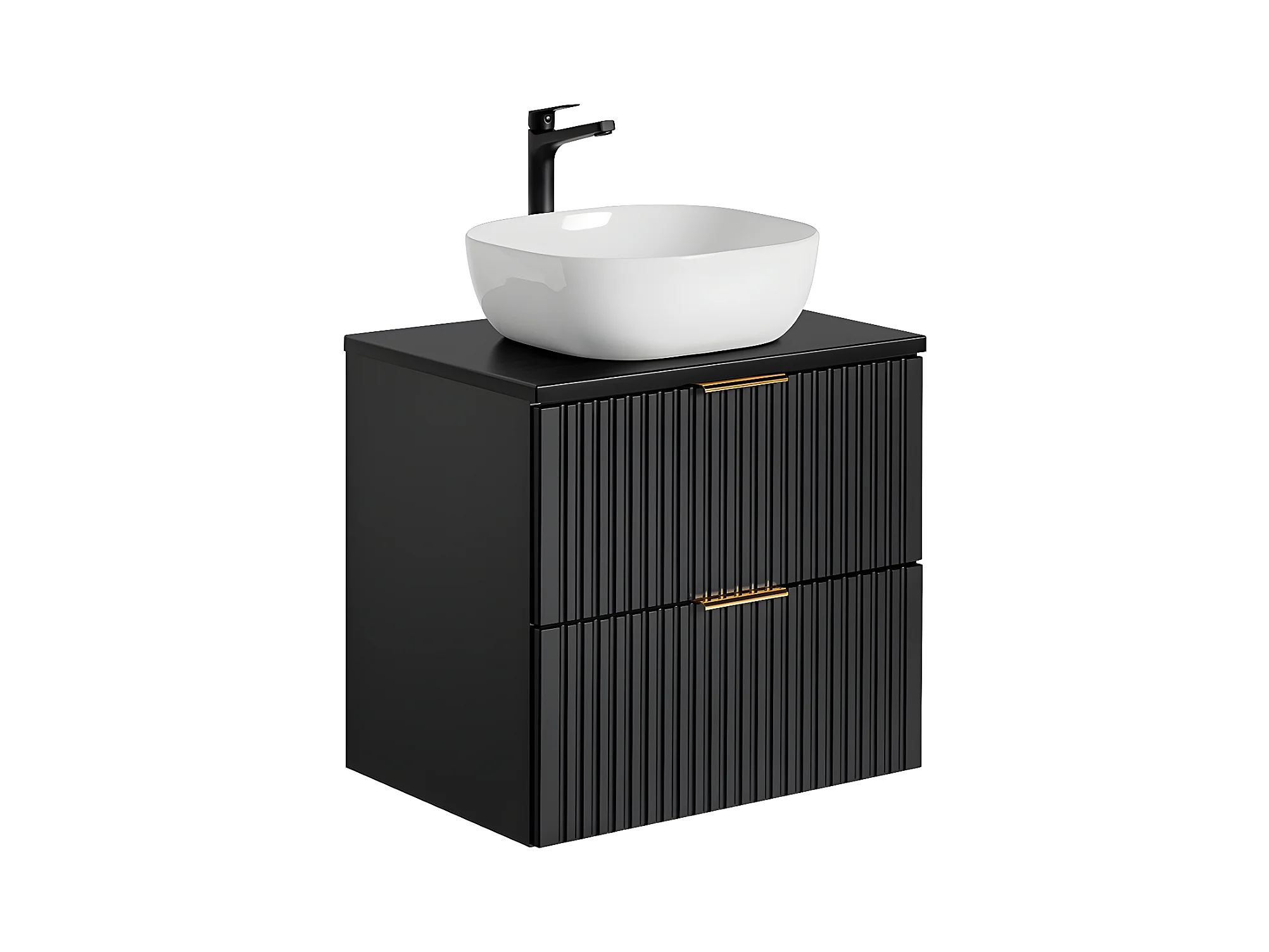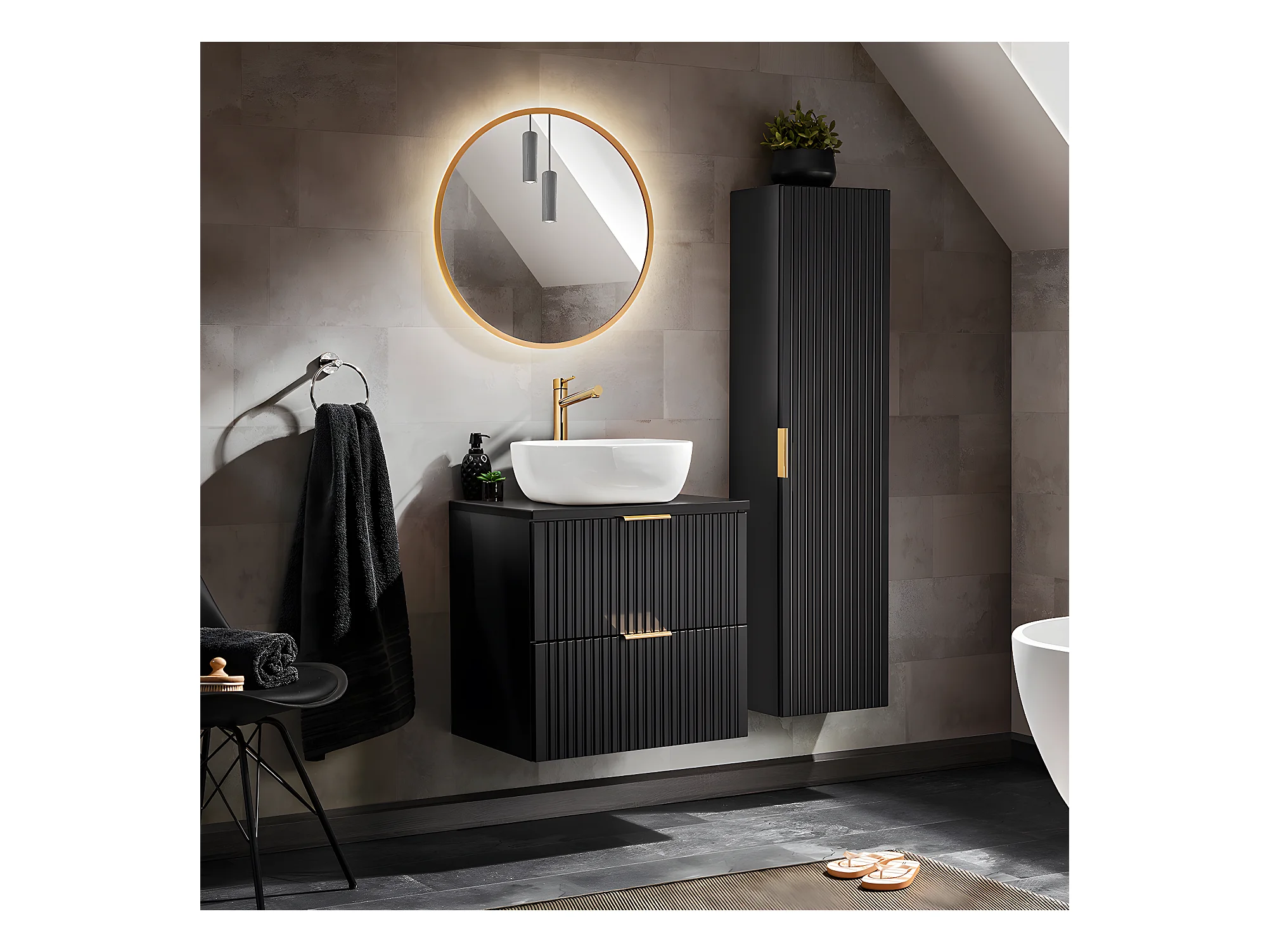 Ensemble meuble simple vasque 60cm et colonne Gaia Bois et Noir - Vasque Noir