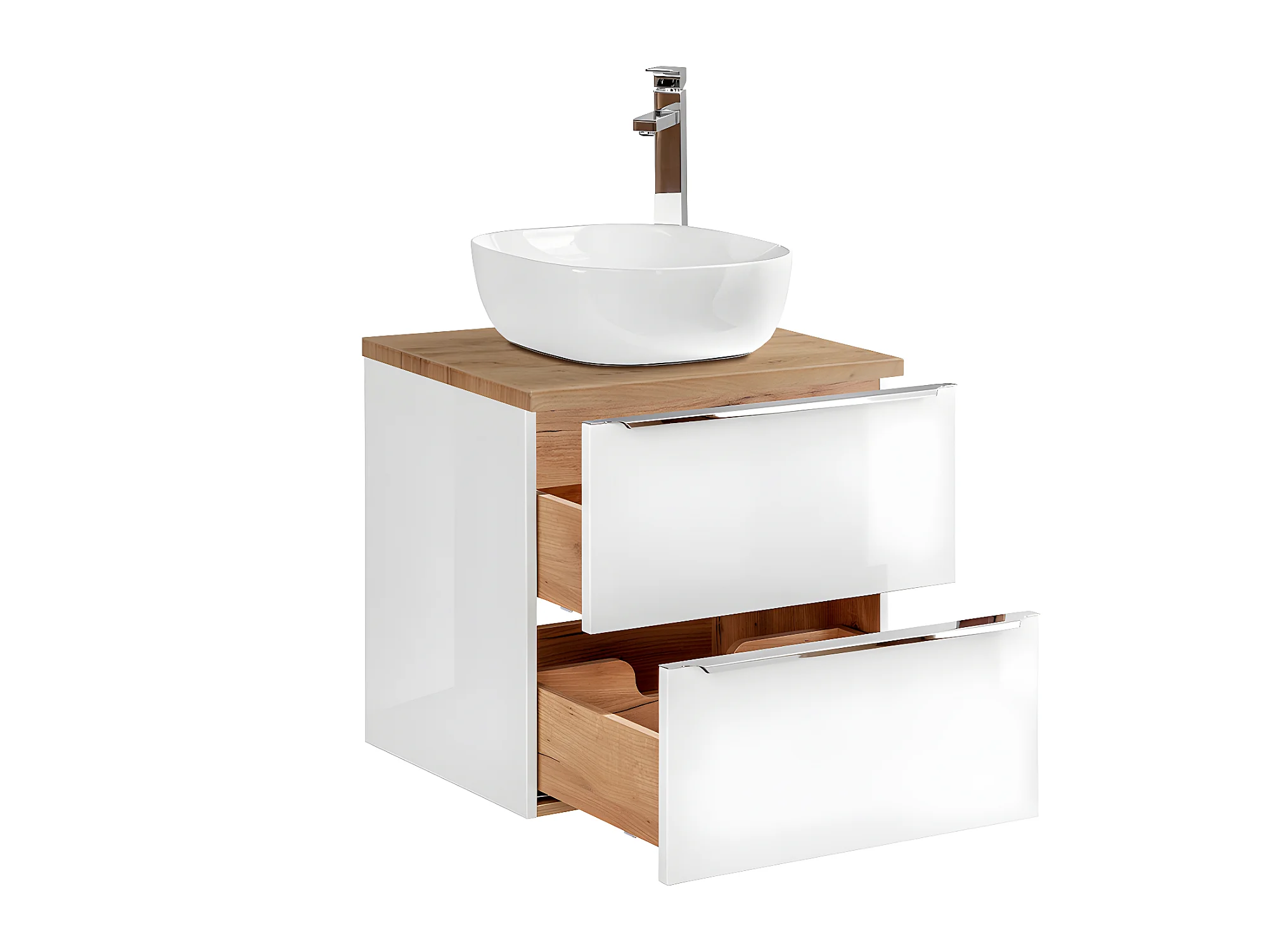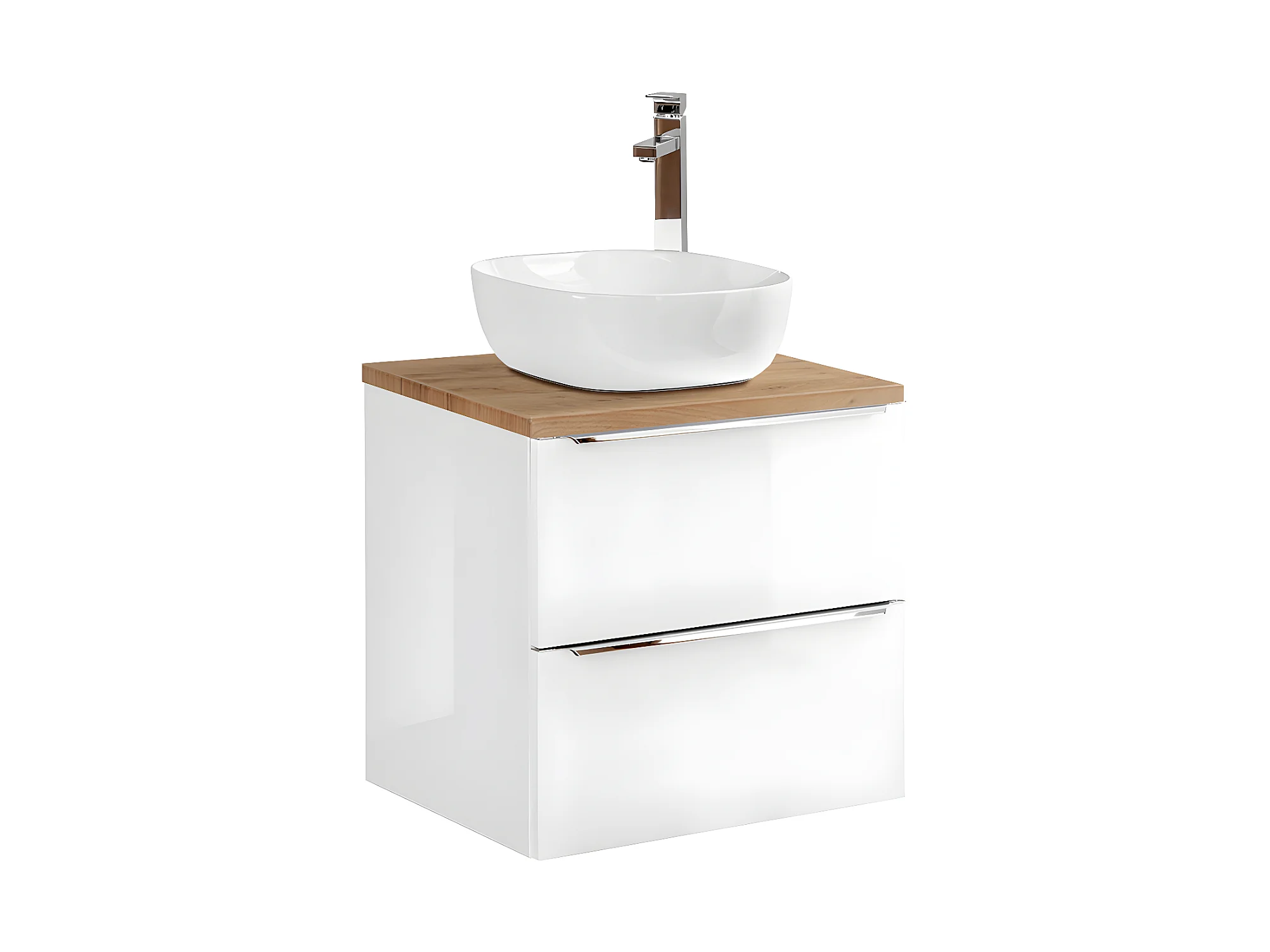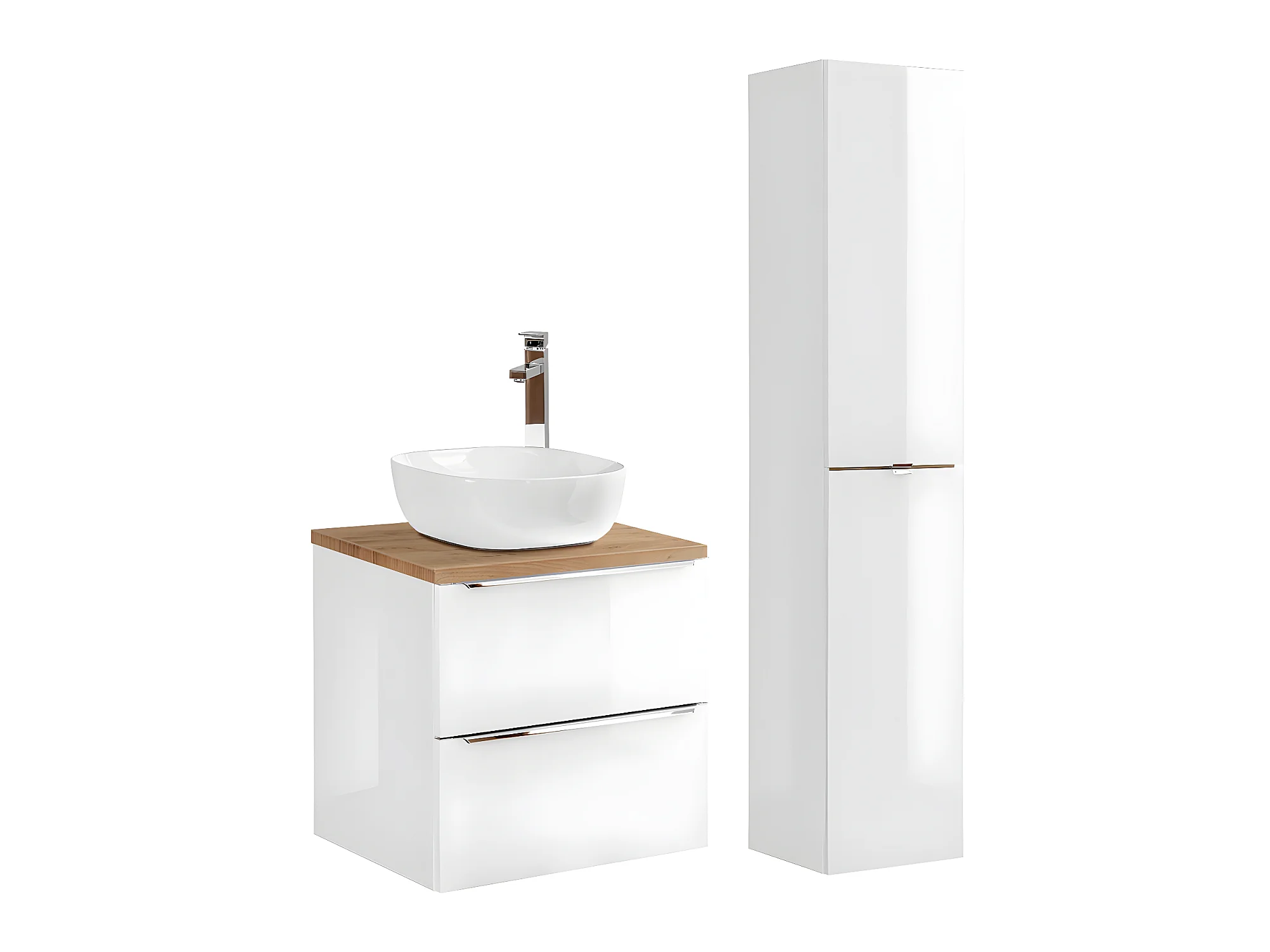Ensemble meuble simple vasque 60cm 2 tiroirs et colonne Livia Blanc et Bois