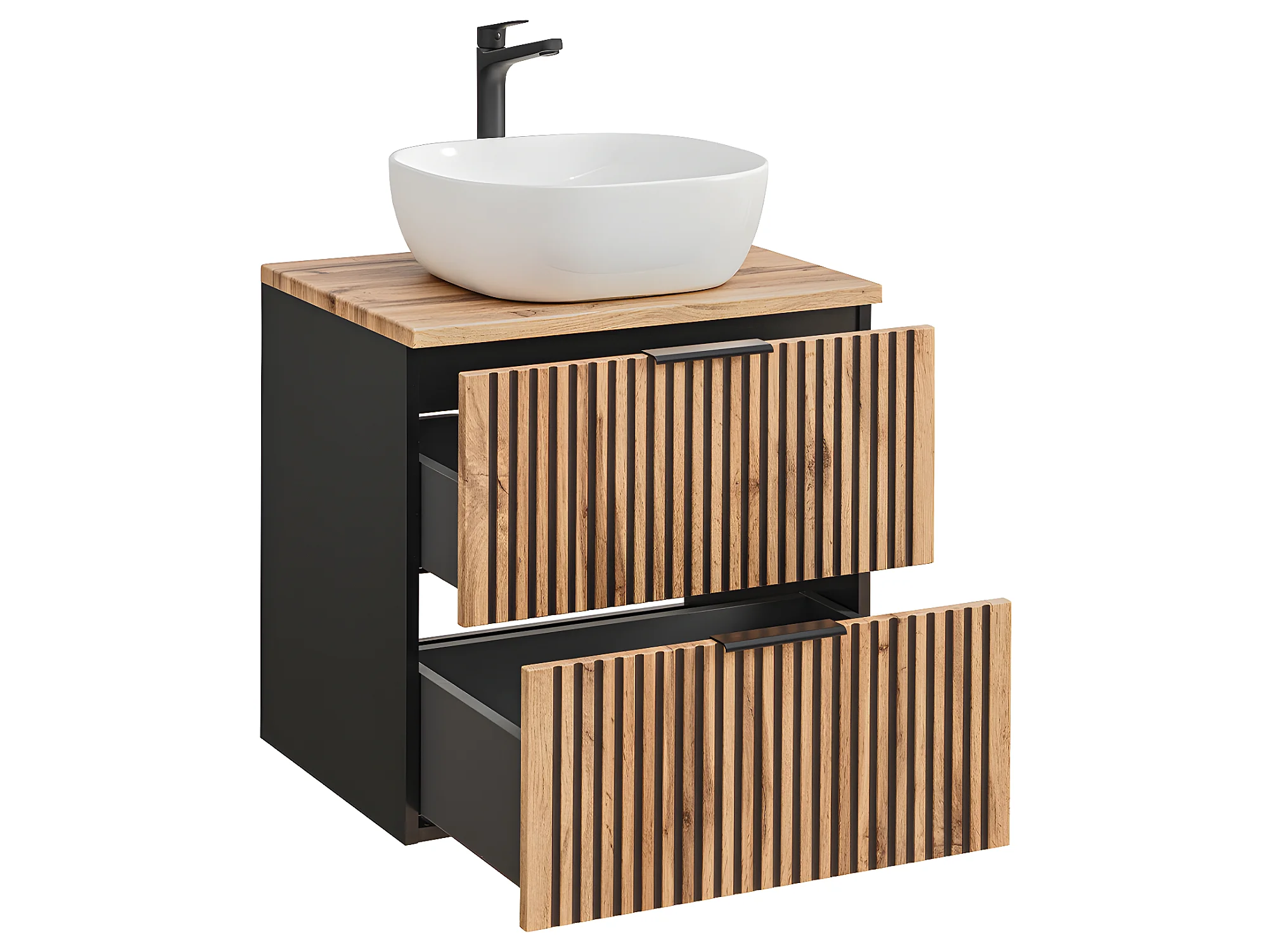 Ensemble meuble simple vasque 60cm et colonne Gaia Bois et Noir - Vasque Noir
