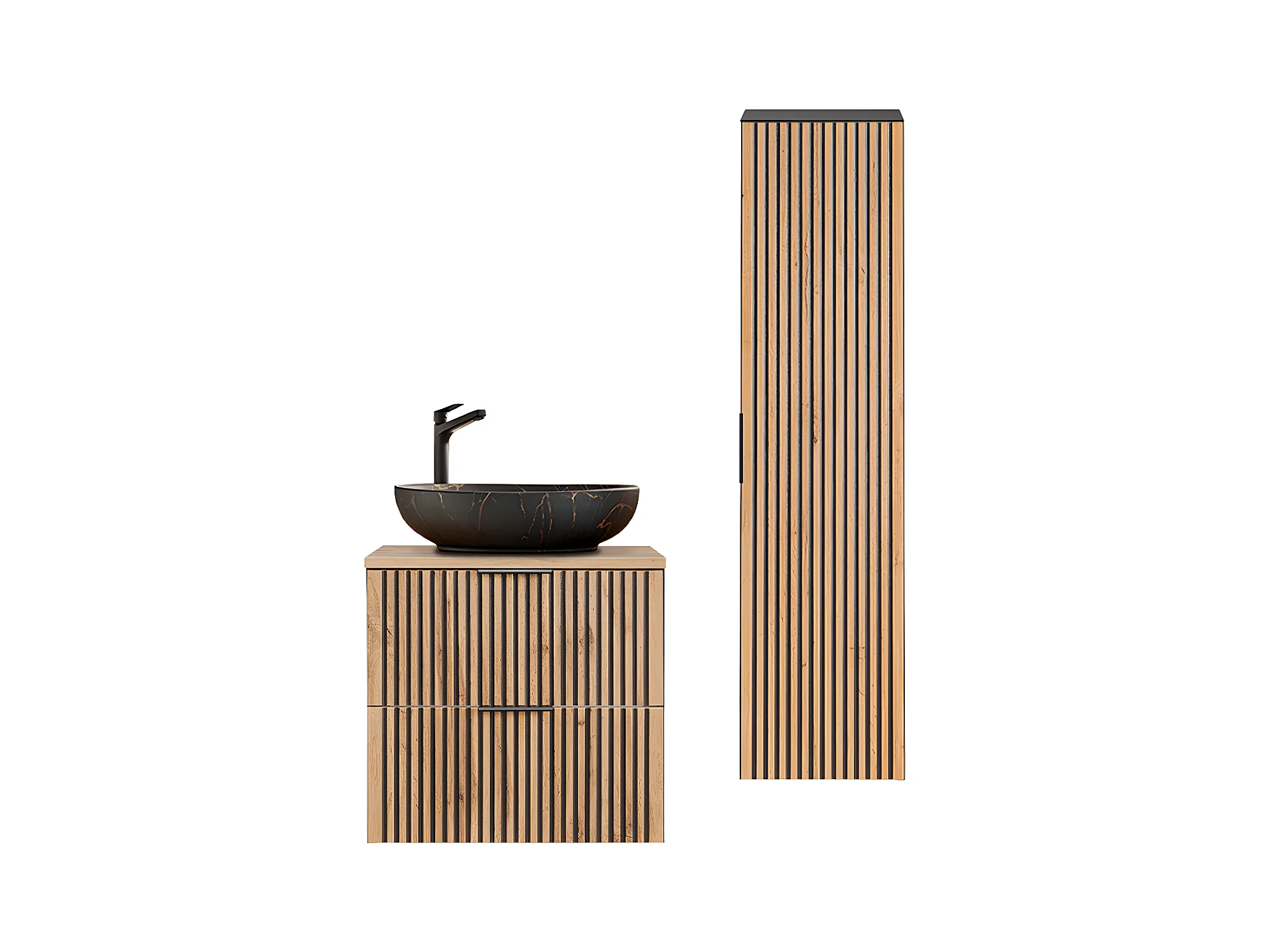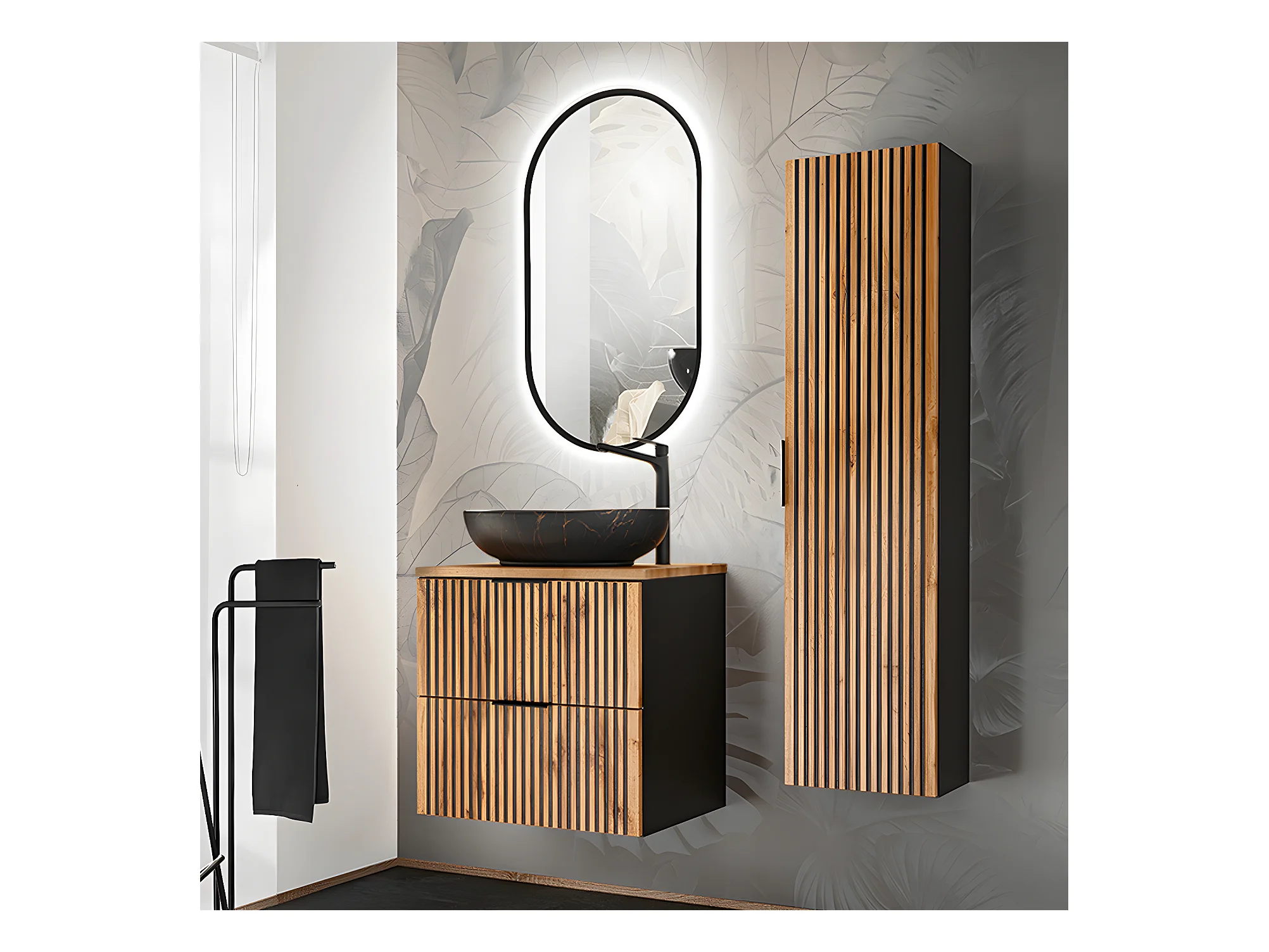 Ensemble meuble simple vasque 60cm et colonne Adriel Noir et Bois