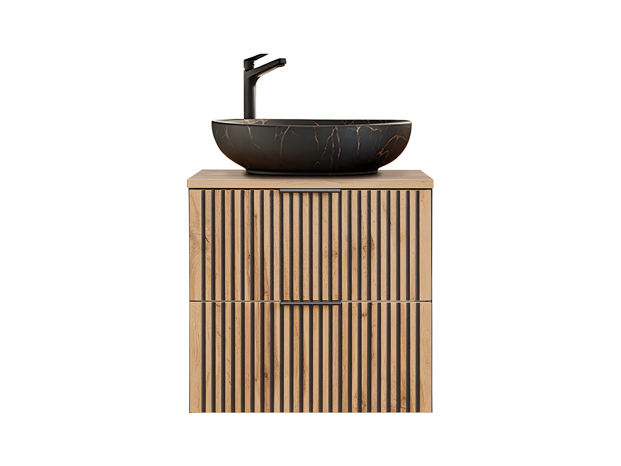 Ensemble meuble simple vasque 60cm et colonne Gaia Bois et Noir - Vasque Noir