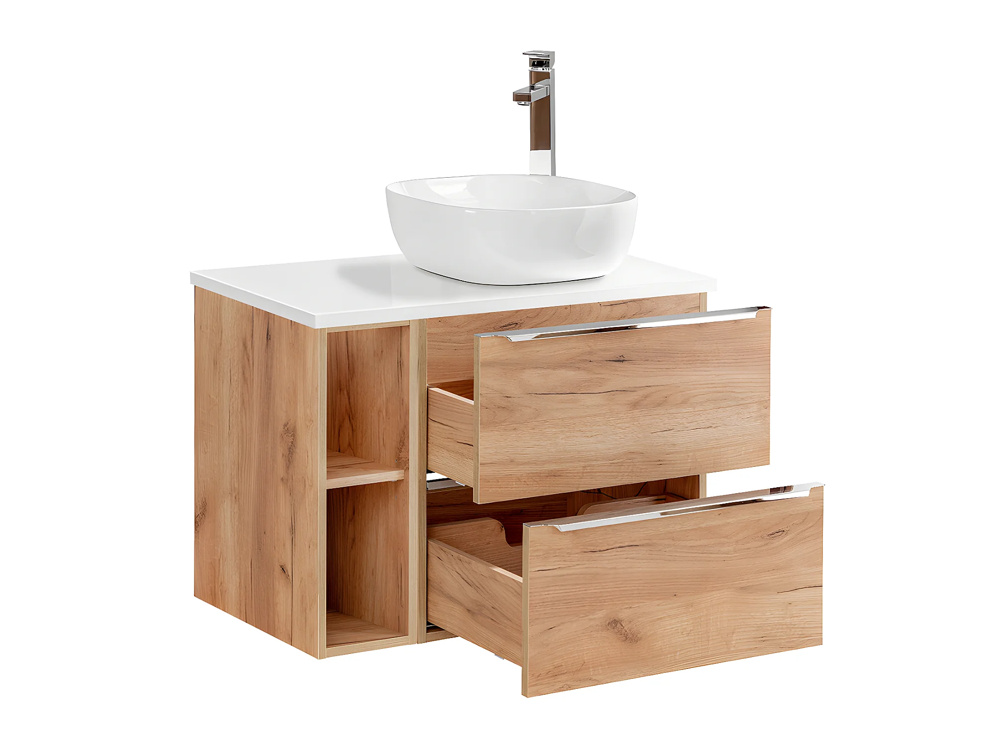 Ensemble meuble simple vasque 80cm 2 niches et colonne April Bois et Blanc