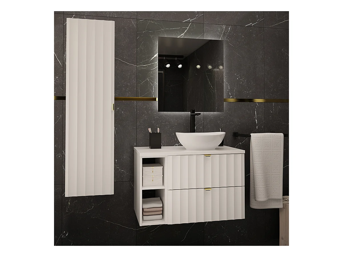 Ensemble meuble simple vasque 80cm 2 niches et colonne Lexa Blanc
