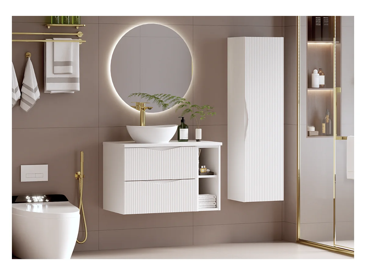 Ensemble meuble simple vasque 80cm et colonne Tao Blanc