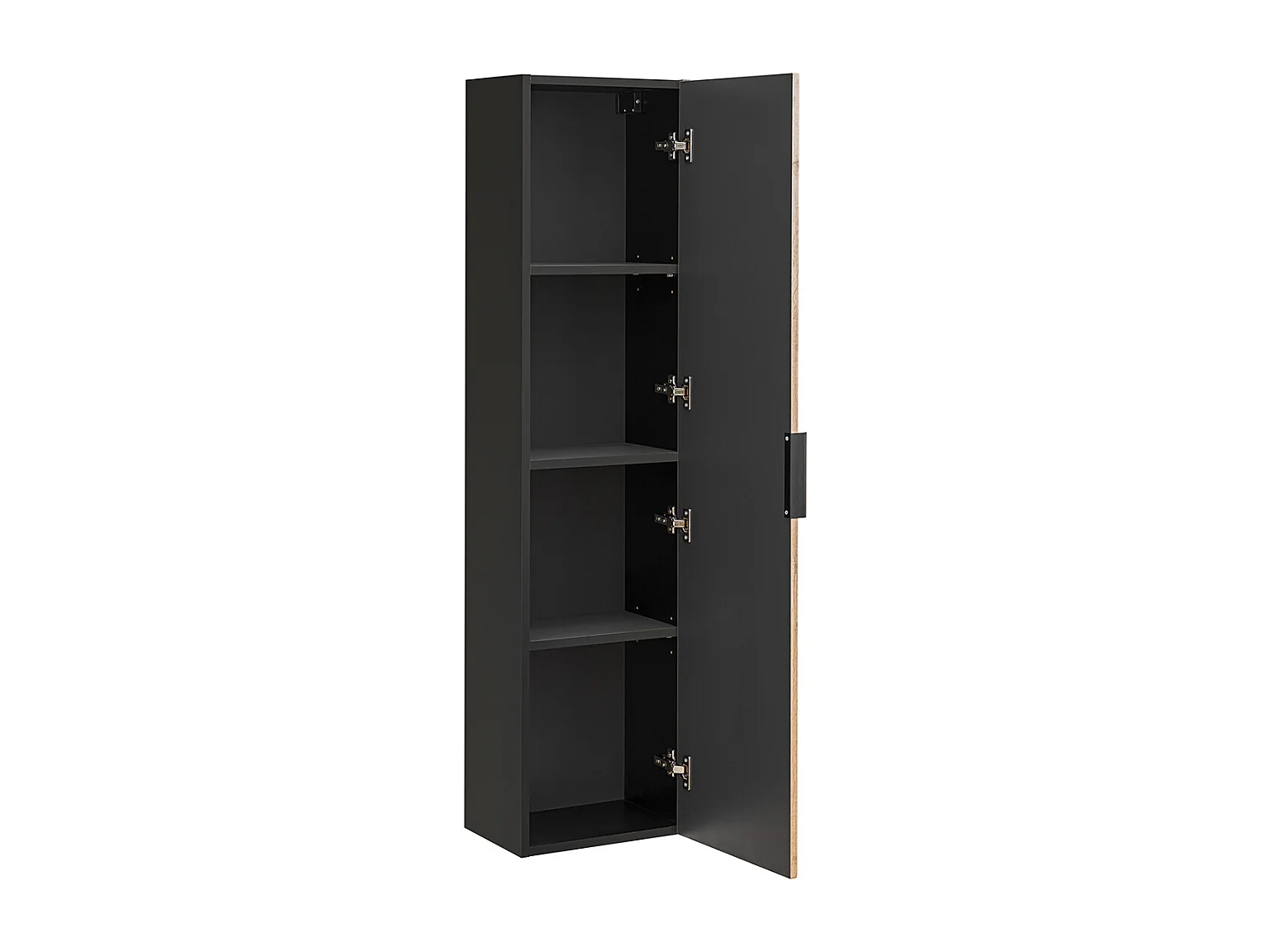 Ensemble meuble simple vasque 80cm 2 niches miroir LED colonne et 3 armoires murales Gaia Bois et Noir - Vasque Noir