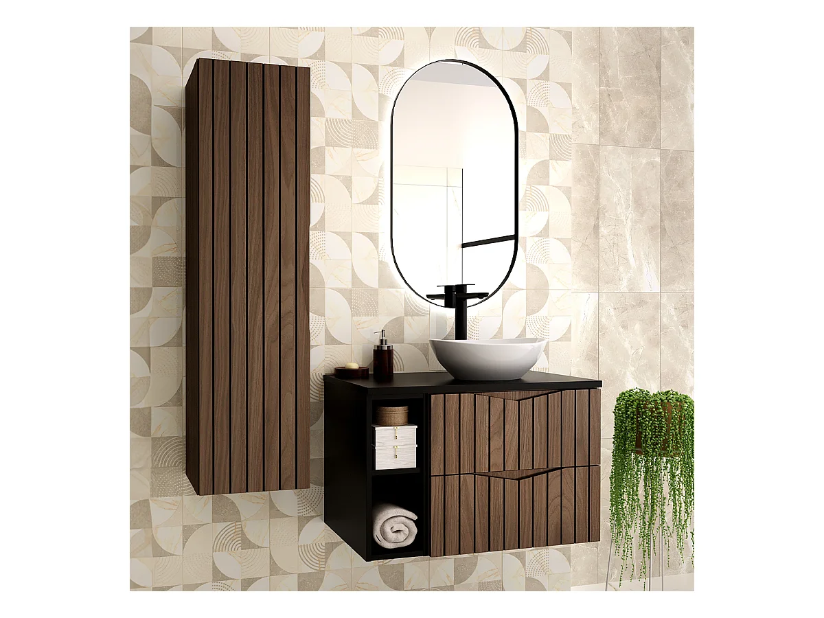 Ensemble meuble simple vasque 80cm et colonne Siena bois et noir