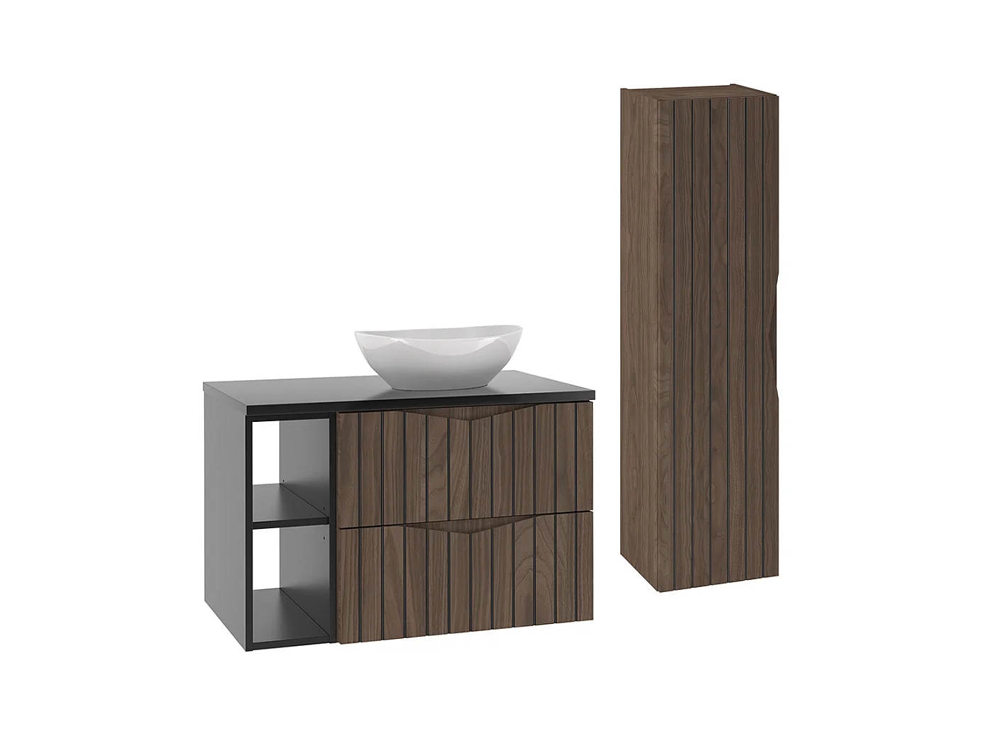 Ensemble meuble simple vasque 80cm et colonne Sylla Noir et bois