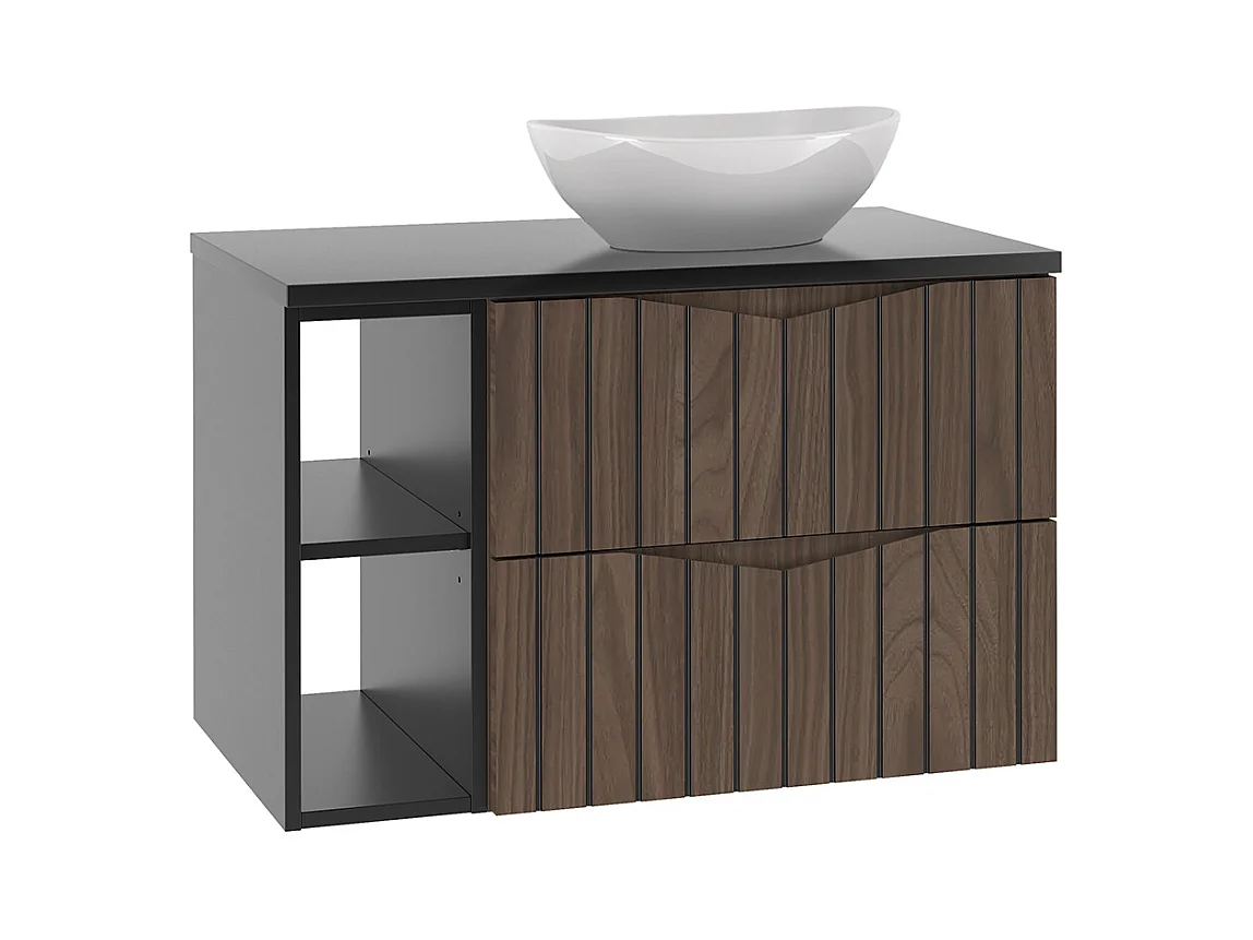 Ensemble meuble simple vasque 80cm 2 niches et colonne Sylla Noir et bois