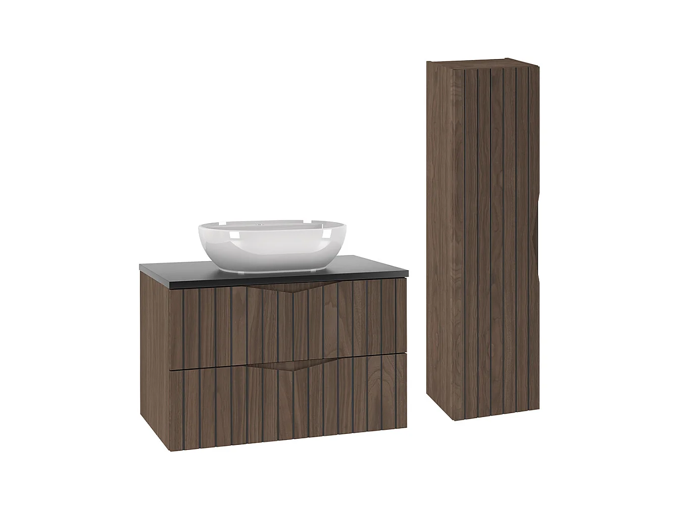 Ensemble meuble simple vasque 80cm et colonne Siena bois et noir